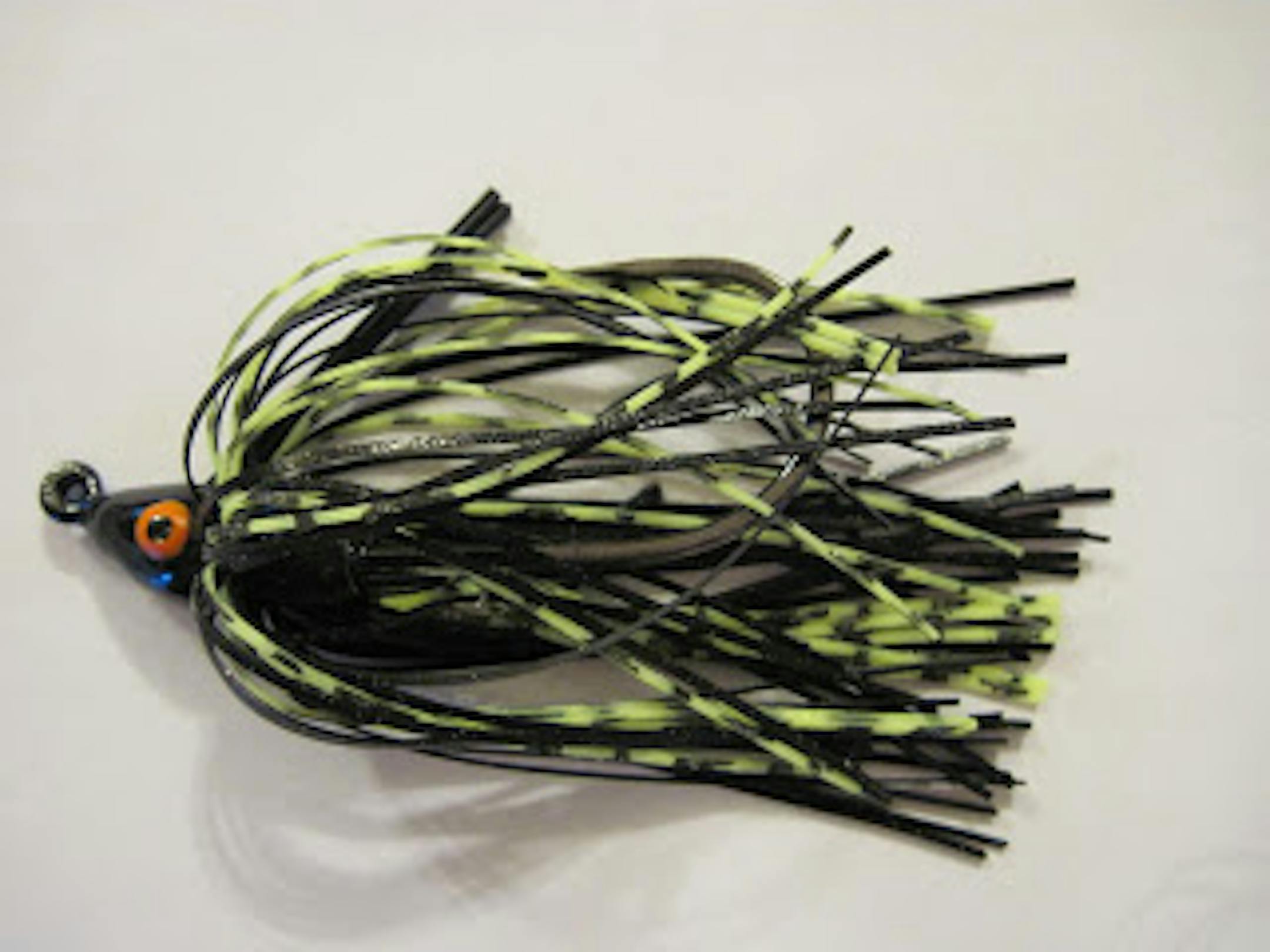 **Above Picture: Two Super K Swim Jigs in black chartreuse and white flash.