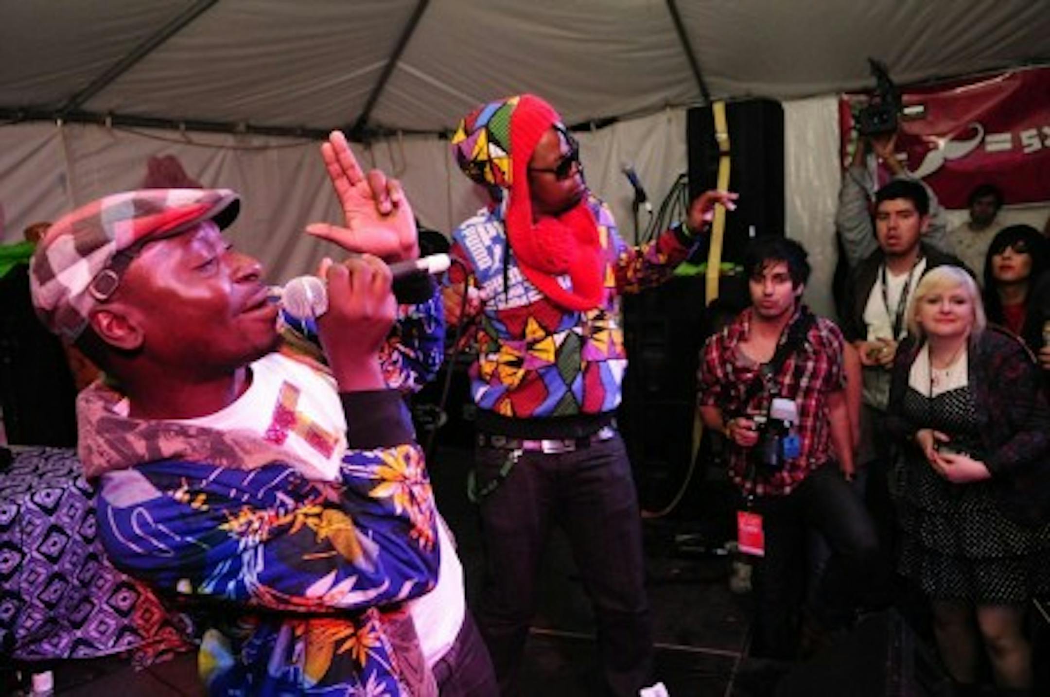 Worst proof this band's buzz is for real: London-based African electronic group the Very Best (in photo above) had a terrible slot to end the night at the Beauty Bar Backyard (an overpacked parking lot tent), and they never really seemed to finish soundchecking and setting up their equipment -- although, they did find time to bring out inflatable palm trees (?!). The assorted moments when they did get rocking, though, the two-vocalist, one-beatmaker, one-dancer lineup was quite innovative and intoxicating.