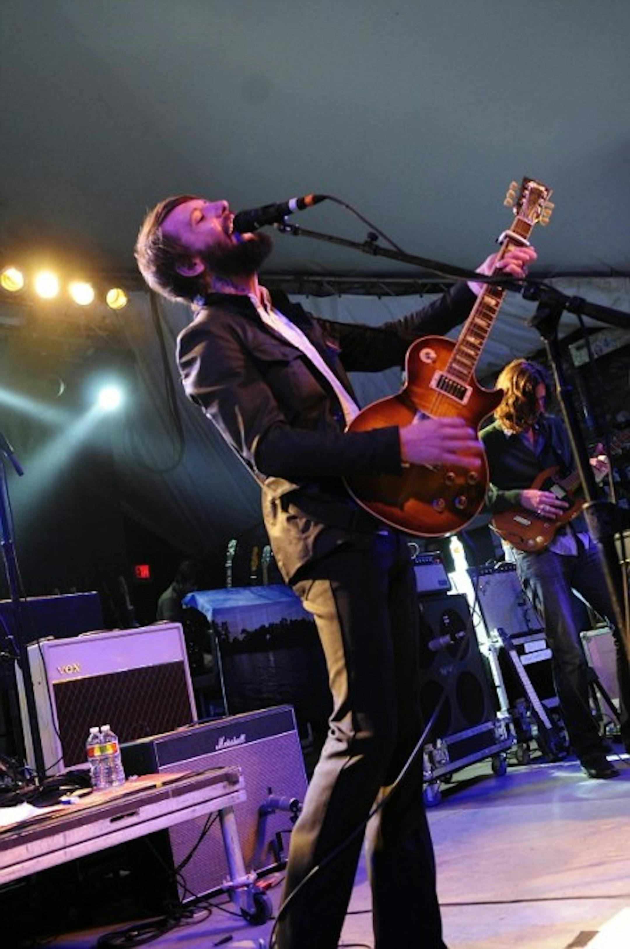 Best cover song: "Sugarcube," a Yo La Tengo song that Band of Horses played to finish off their already magical set outside Stubb's. I was hoping the South Carolina/Seattle band (that's frontman Ben Bridwell in the photo) would preview songs from their record due May 18, but then I remembered how much I love some of the songs off their first two albums -- most of which they played, including opener "Is There a Ghost," "Great Salt Lake," "No One's Gonna Love You," "General Specific" and "The Funeral." Hearing them outdoors on a starry Texas night, they never sounded better.