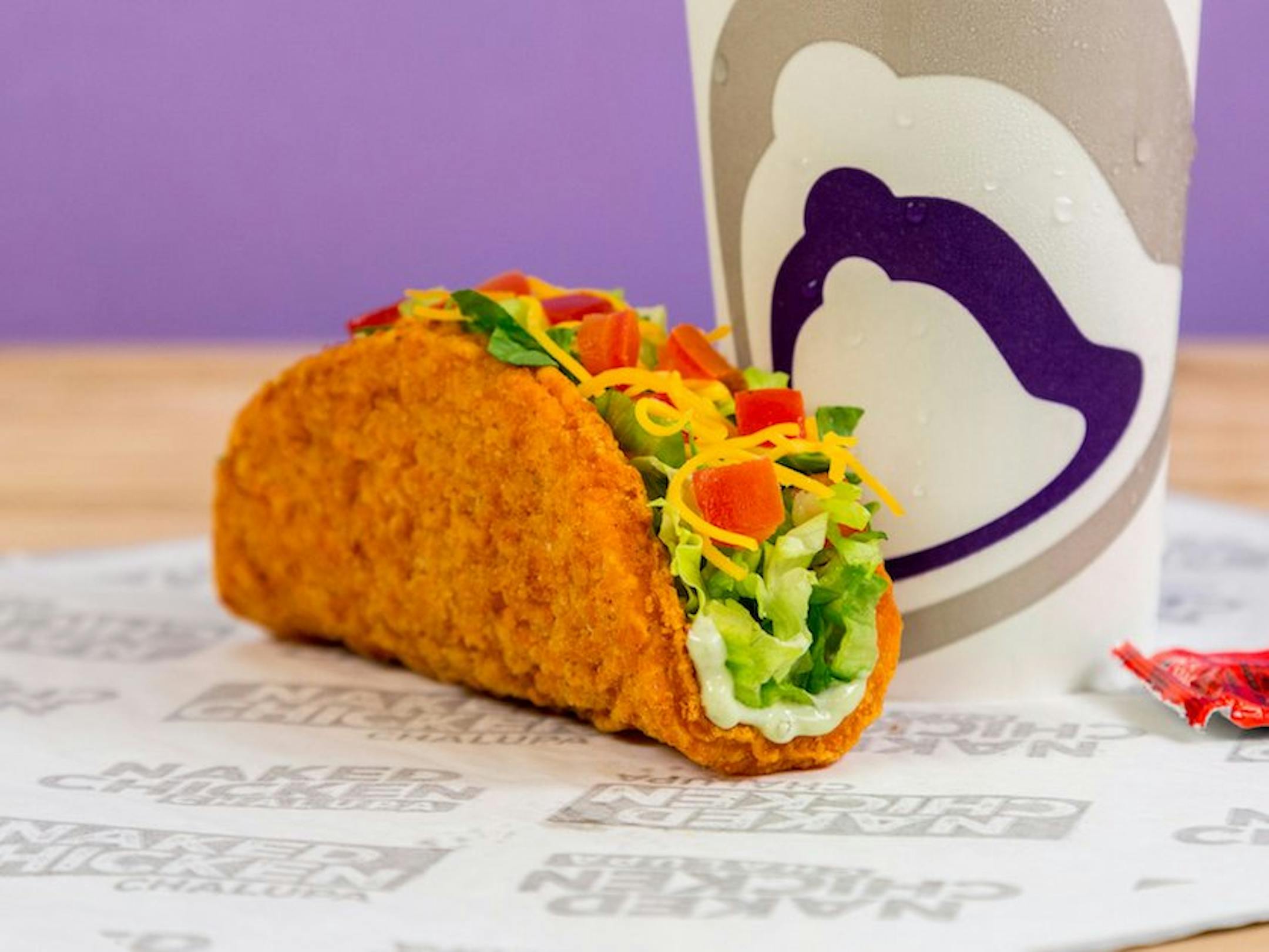 Taco Bell says the shell of the Naked Chicken Chalupa is made up of all-white seasoned chicken. The rest of the taco is packed with lettuce, tomatoes, cheddar cheese and avocado ranch sauce.