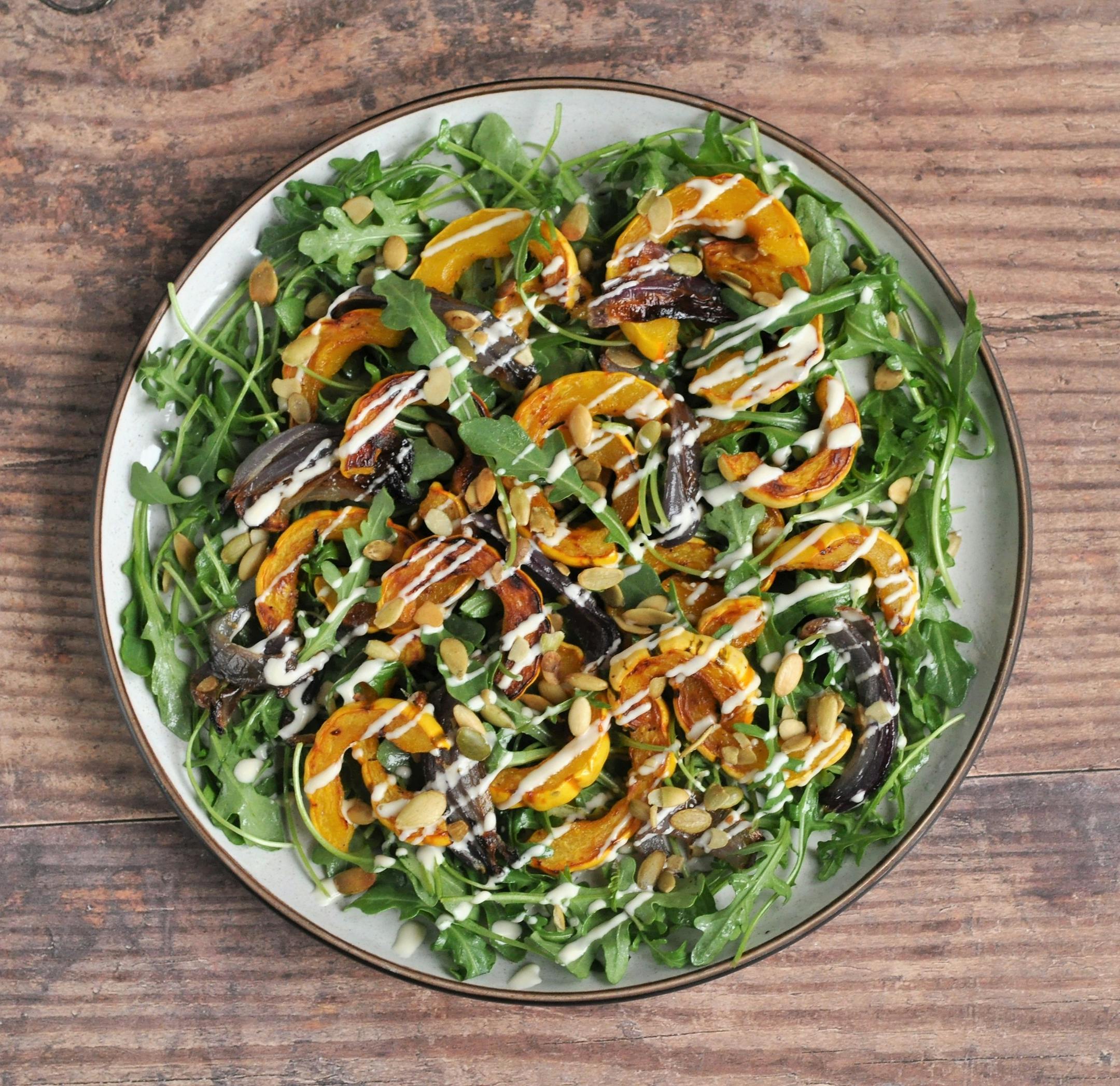 This week, it's being put to good use in a simple but delightfully sophisticated Roasted Delicata Squash Salad with Tahini Honey Dressing.