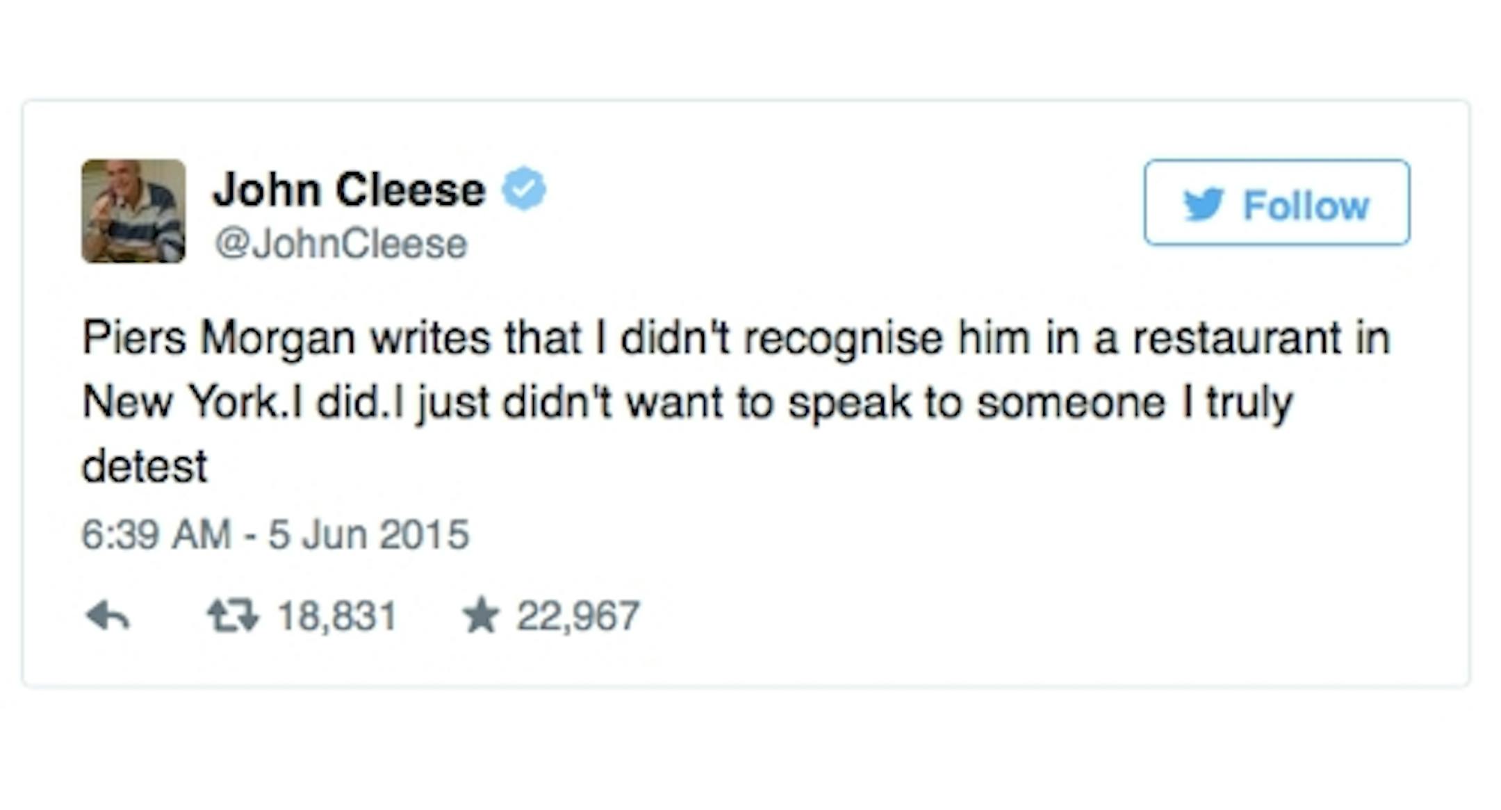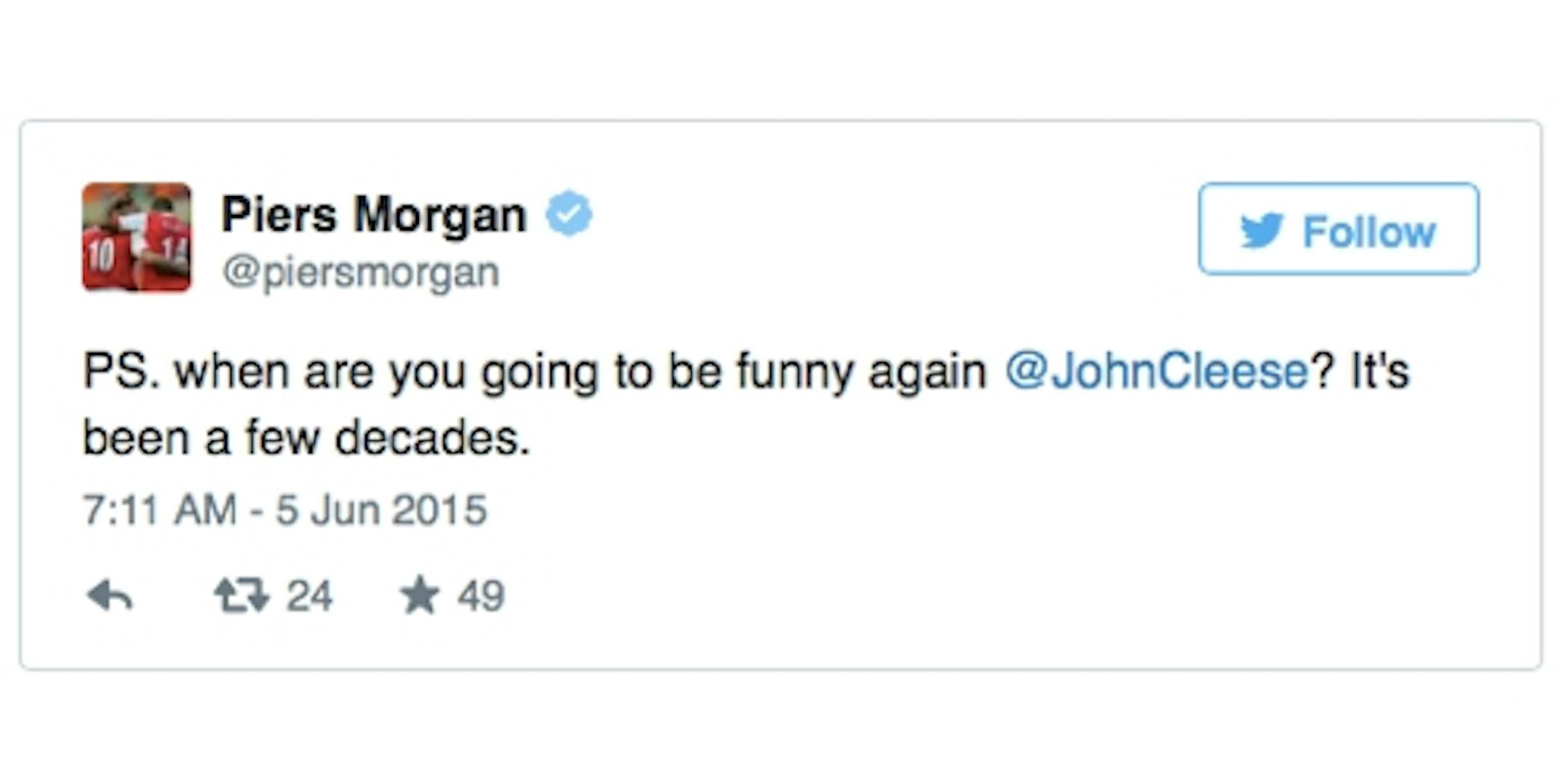Piers Morgan vs. John Cleese. Pick a side. Think hard, weigh the options -