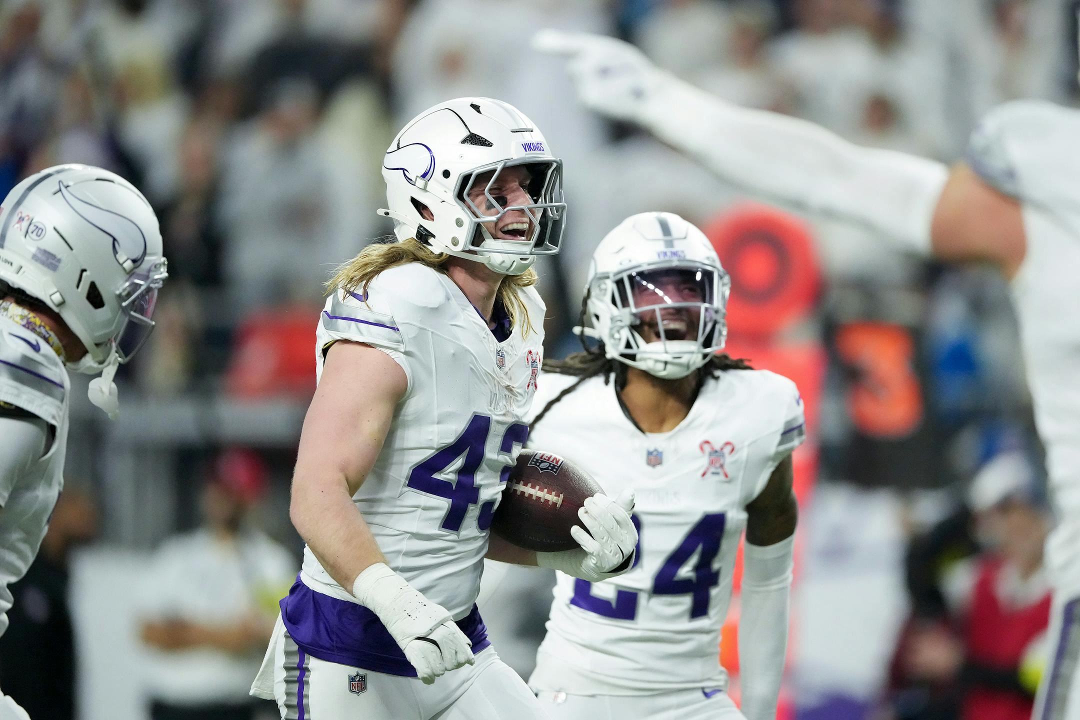 Andrew Van Ginkel recovered two fumbles and posted 1½ sacks, while Harrison Smith picked off Jared Goff once and recorded his first sack of the season. The Vikings won despite Brosmer throwing for just 51 yards, completing nine of his 16 passes while being sacked seven times.