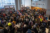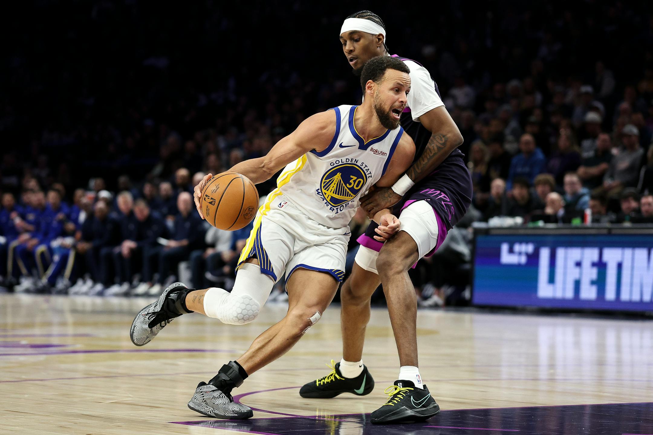 A day after the NBA postponed the Timberwolves’ game against the Golden State Warriors, the teams played their makeup game at Target Center even as protestors were in downtown in response to the killing of Alex Pretti by federal agents in Minneapolis around the start of the game.