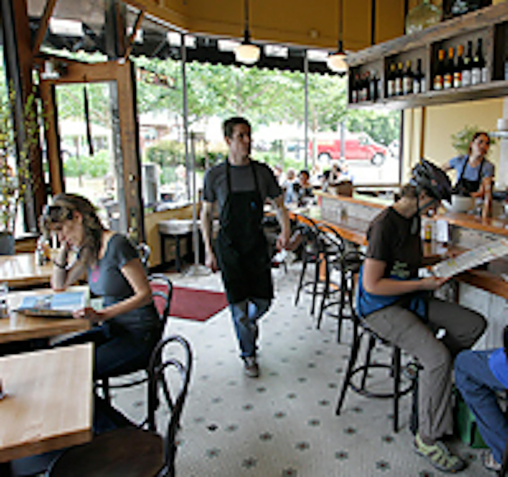 My love affair with the kitchen's creamy-yet-chunky guacamole started with its breakfast burrito, which is crammed with toothy black beans, rice, scrambled eggs and that marvelous salsa. Tender, lightly toasted waffles, made with what sounds like every grain and nut in the bulk-foods aisle at the co-op, are dressed with a pleasant combination of walnuts and a dark maple syrup.