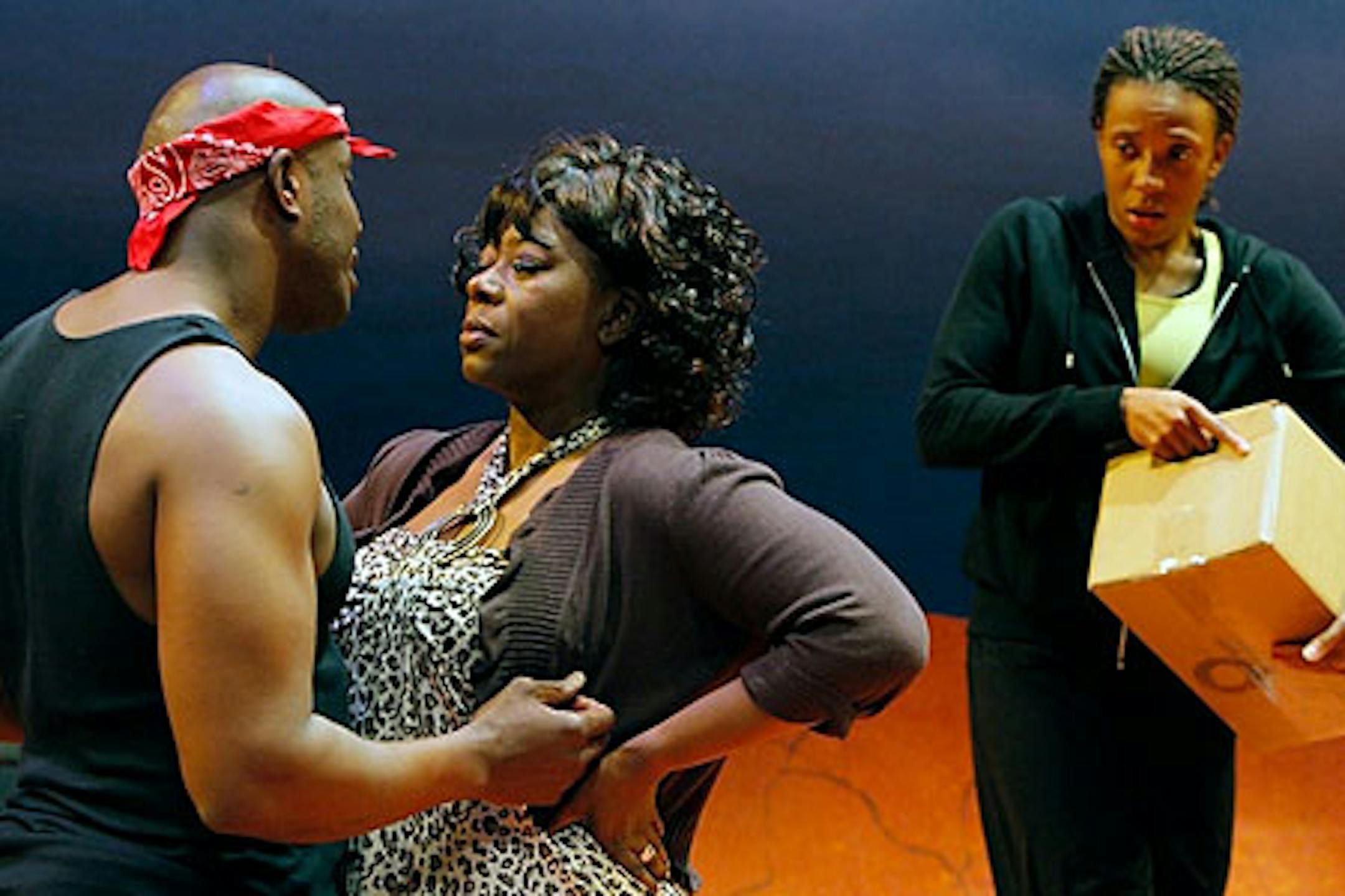 Ansa Akyea, Greta Oglesby and Christiana Clark in a scene from "In the Red and Brown Water." Photo by Michal Daniel.