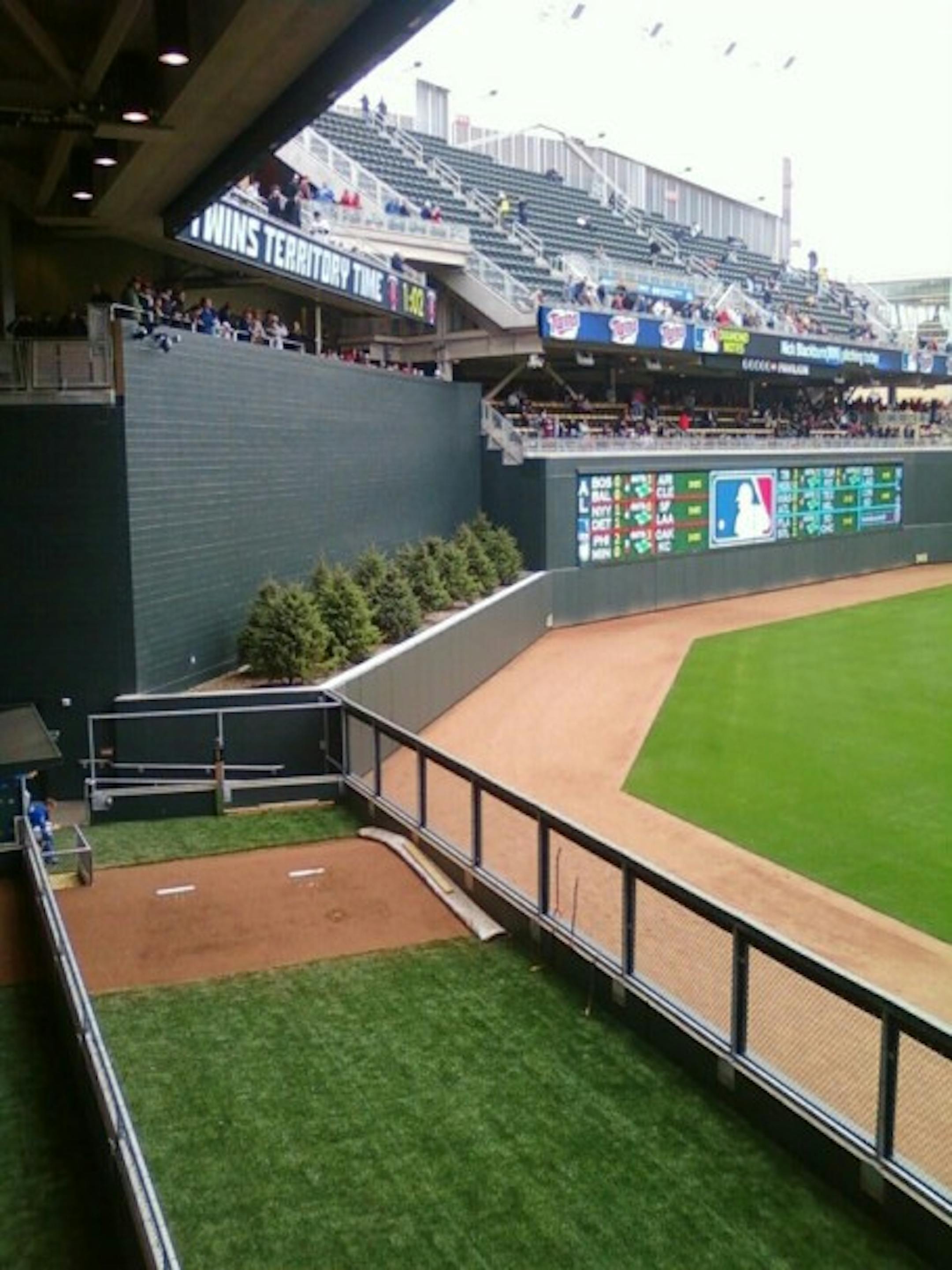 The field itself is breathtaking, and astroturf is becoming a distant memory. The black spruce out in the center field wall gives a true taste of Minnesota, which you can admire while you mow down the many delicious foods and beverages Target Field has to offer... not that I would know yet. All I had to eat was beer. I heard the food was awesome though!