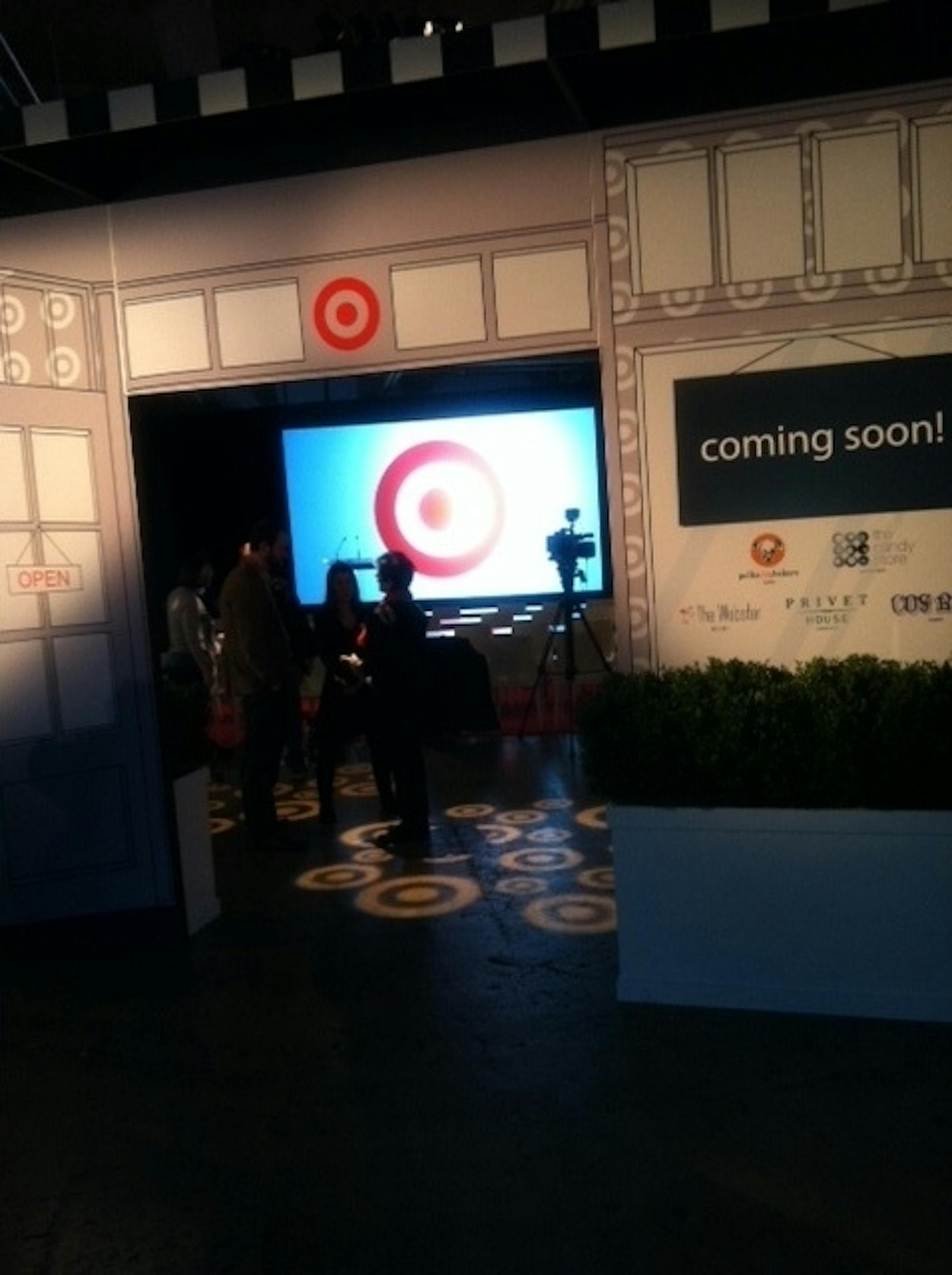 Inside the Highline Studios, an army of attractive public relations women stood watch as journalists examined elaborate sets dedicated to products co-designed by Target and its boutique partners: The Candy Store, Cos Bar, The Webster, Privet House, and Polka Dog Bakery.
