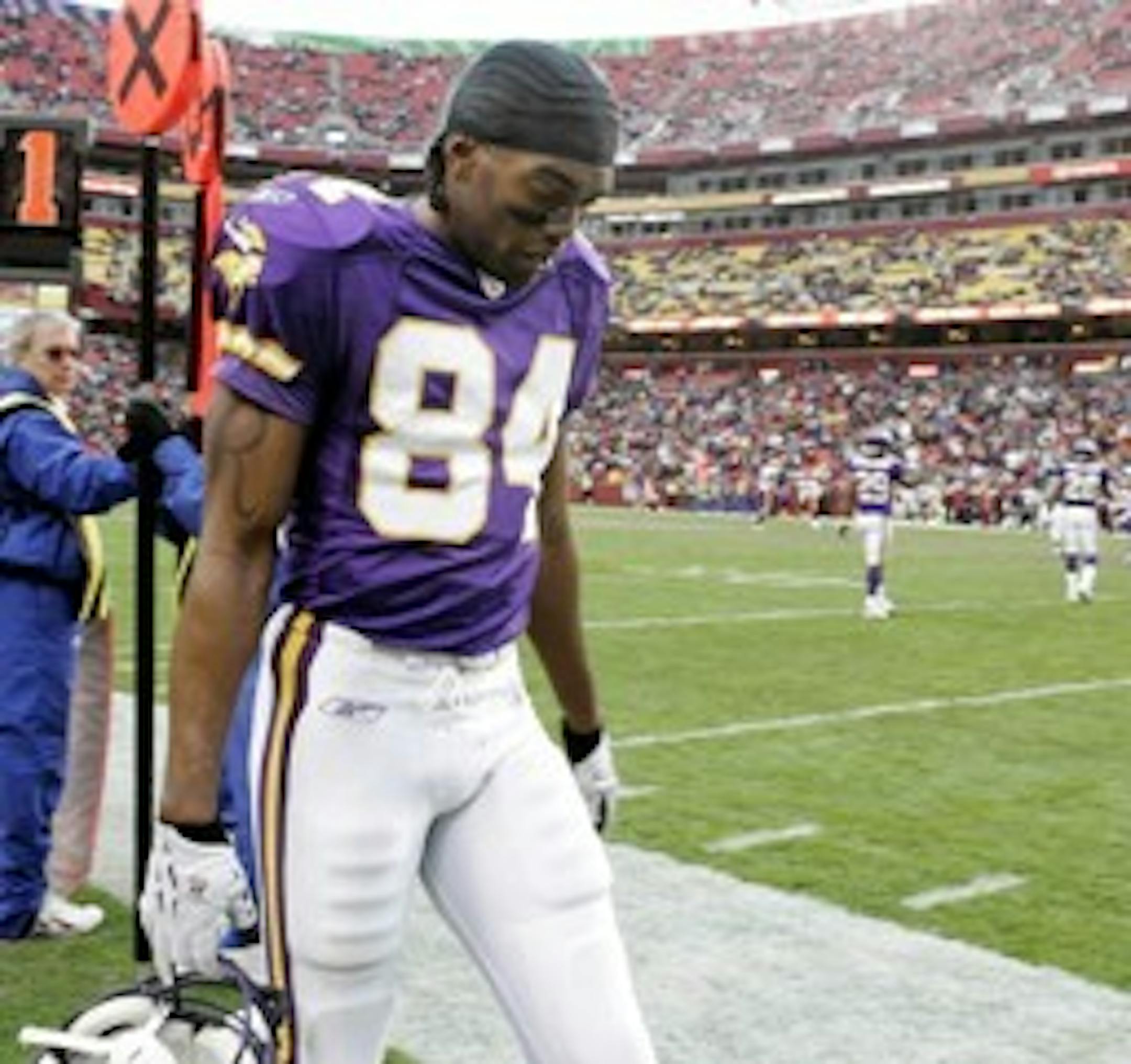3) Every Vikings fan who paid attention between 1998-2004: Moss gets a bad rap sometimes, but he also earns some of his reputation. From "I play when I want to play" to 41-doughnut to that picture you see there of him walking off the field alone with 2 seconds left in a 21-18 game against Washington in 2004, the final regular-season game he would play in purple, Moss absolutely sulks and checks out sometimes when the going gets tough. When things are clicking (see 15-1 Vikings and 16-0 Patriots) there is no better receiver. In the face of adversity, though, Moss shows he can be too much of a front-runner. The Patriots, a rather ordinary team now, are starting to find that out.