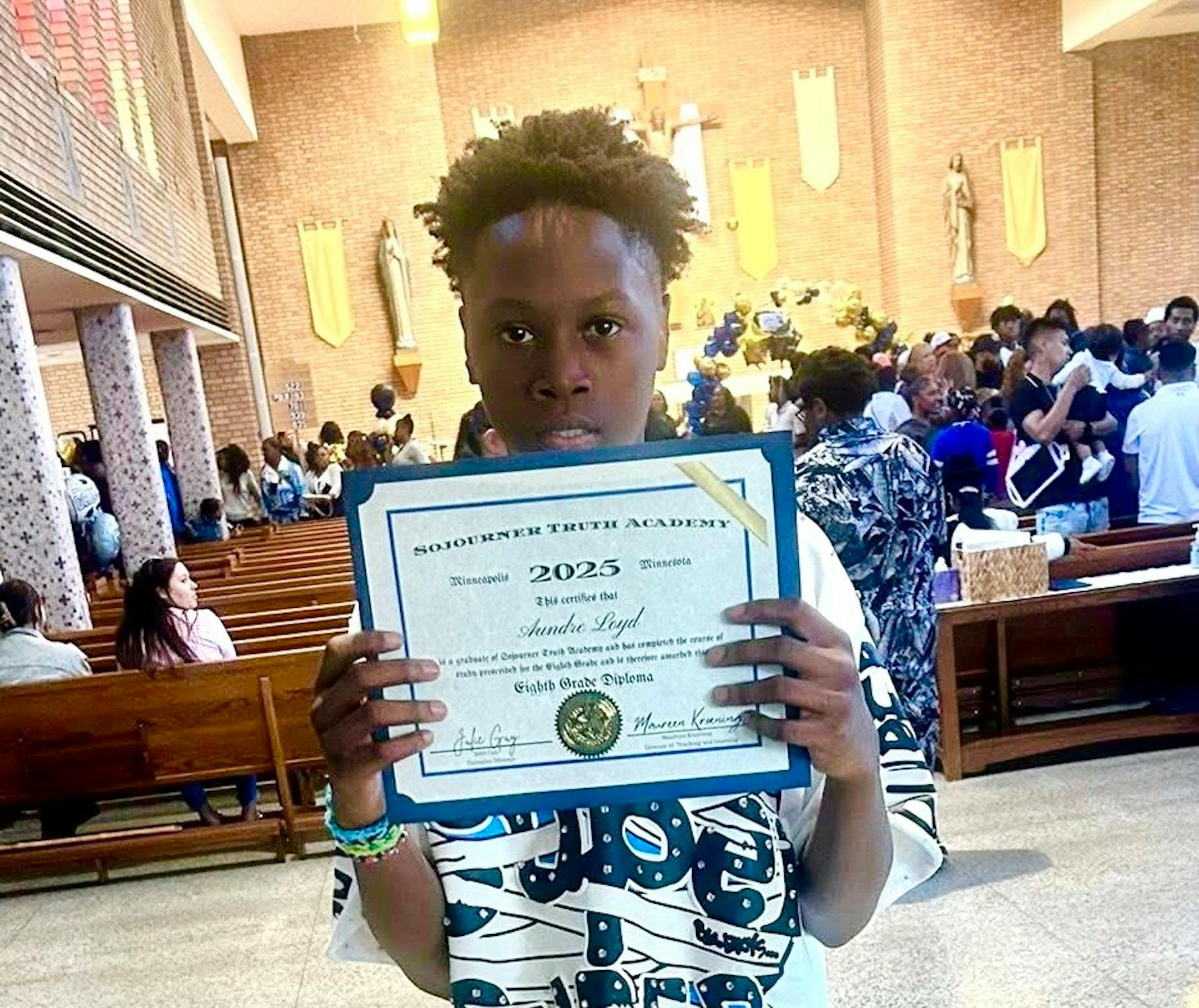 Family members posted a photo of Aundre, who was also known as “Baby Dre” and “Lil Dre,” showing he attended Sojourner Truth Academy in Minneapolis and earned his eighth-grade diploma this year.