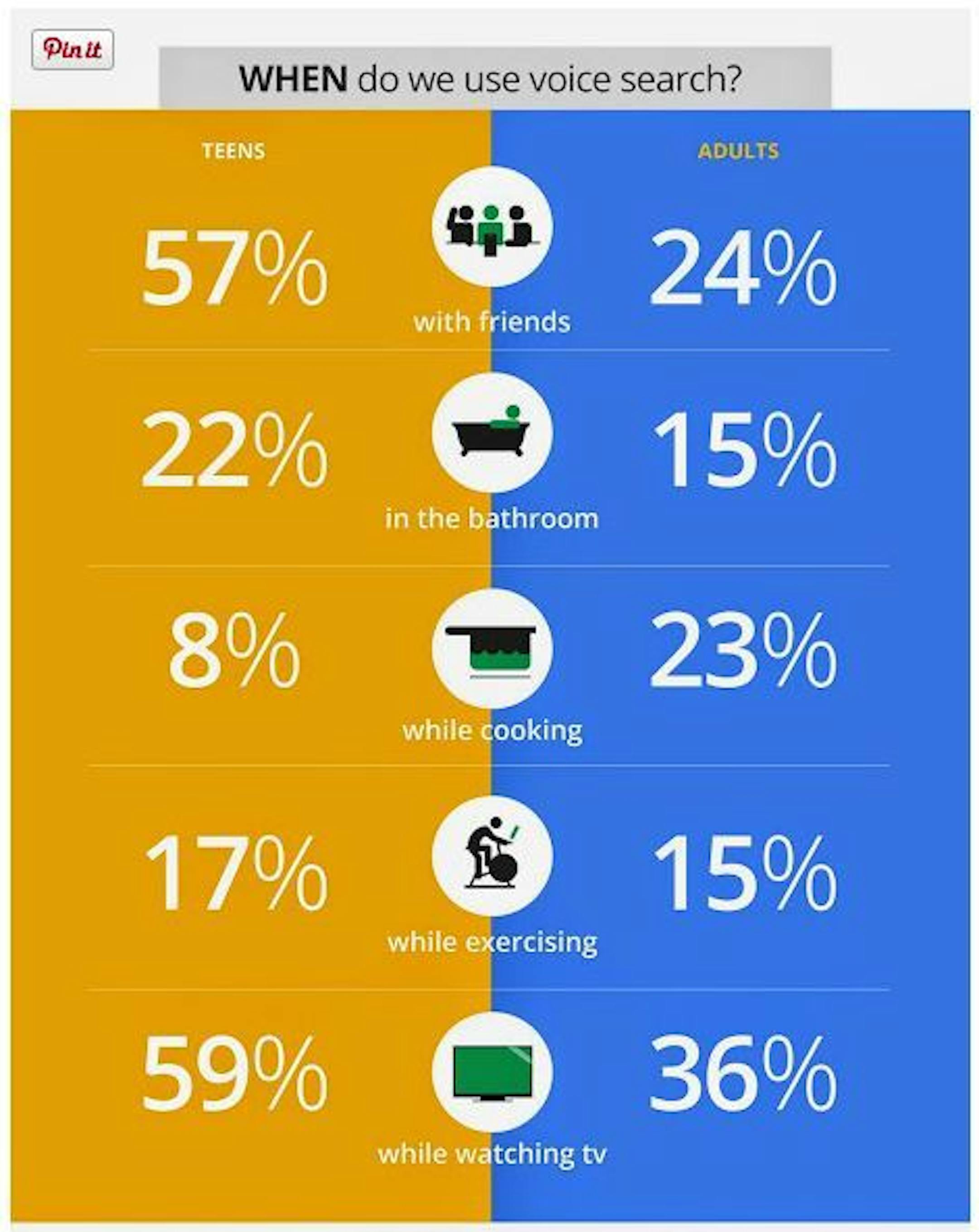 Mobile device voice searches doubled in the past year, according to a survey commissioned by Google. Fifty-five percent of teens and 41 percent adults use voice search more than once a day. Asked why, "it's the future" was the most popular answer. (We explored the topic in a Star Tribune story this summer.)