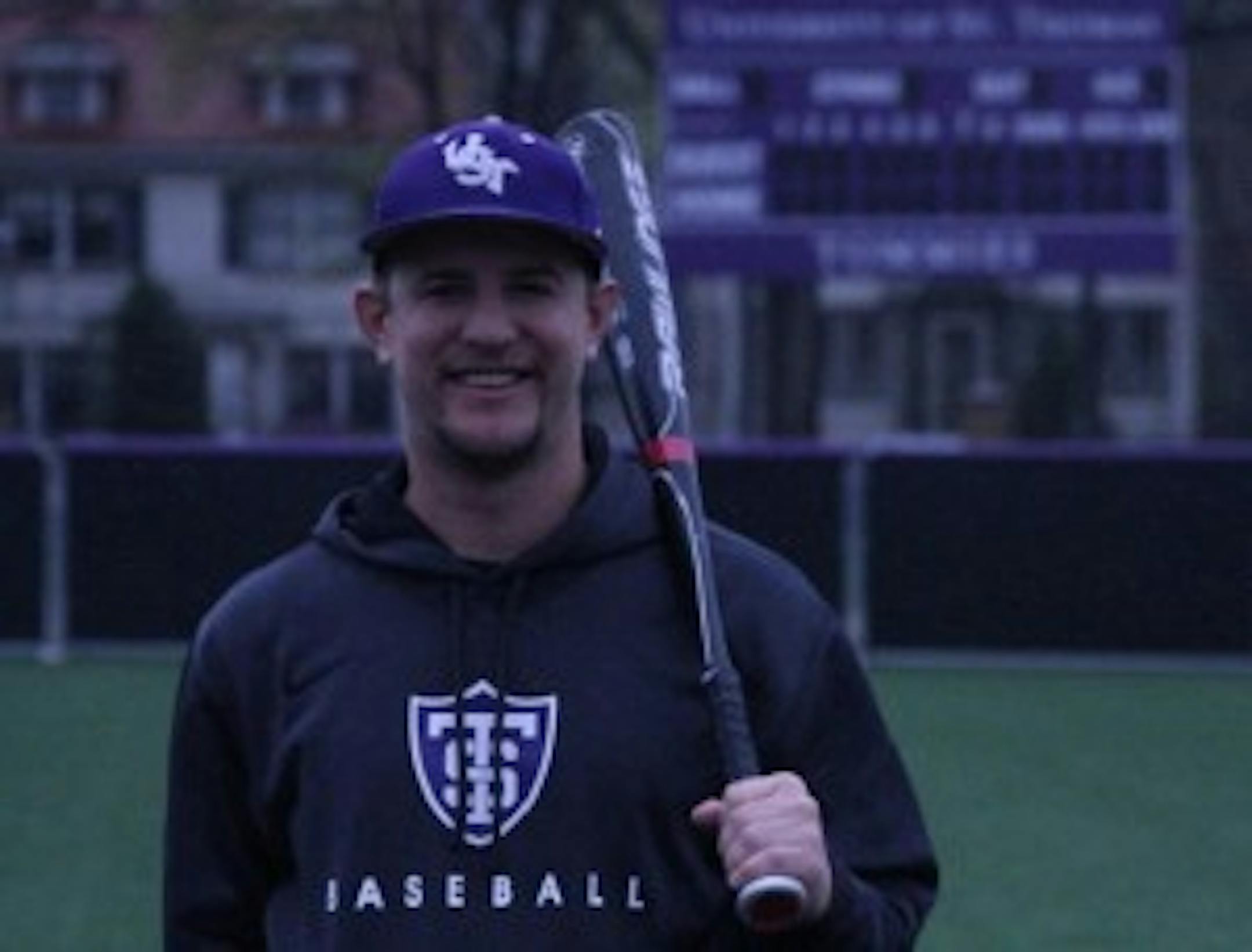 Steinbach lifted a fly ball to deep right field. The wind normally blows in at St. Thomas, but on this day it was blowing out. The fly ball carried all the way over the fence for a grand slam — perfect, since his parents, Terry and Mary, were out in that part of the ballpark and got to witness it.