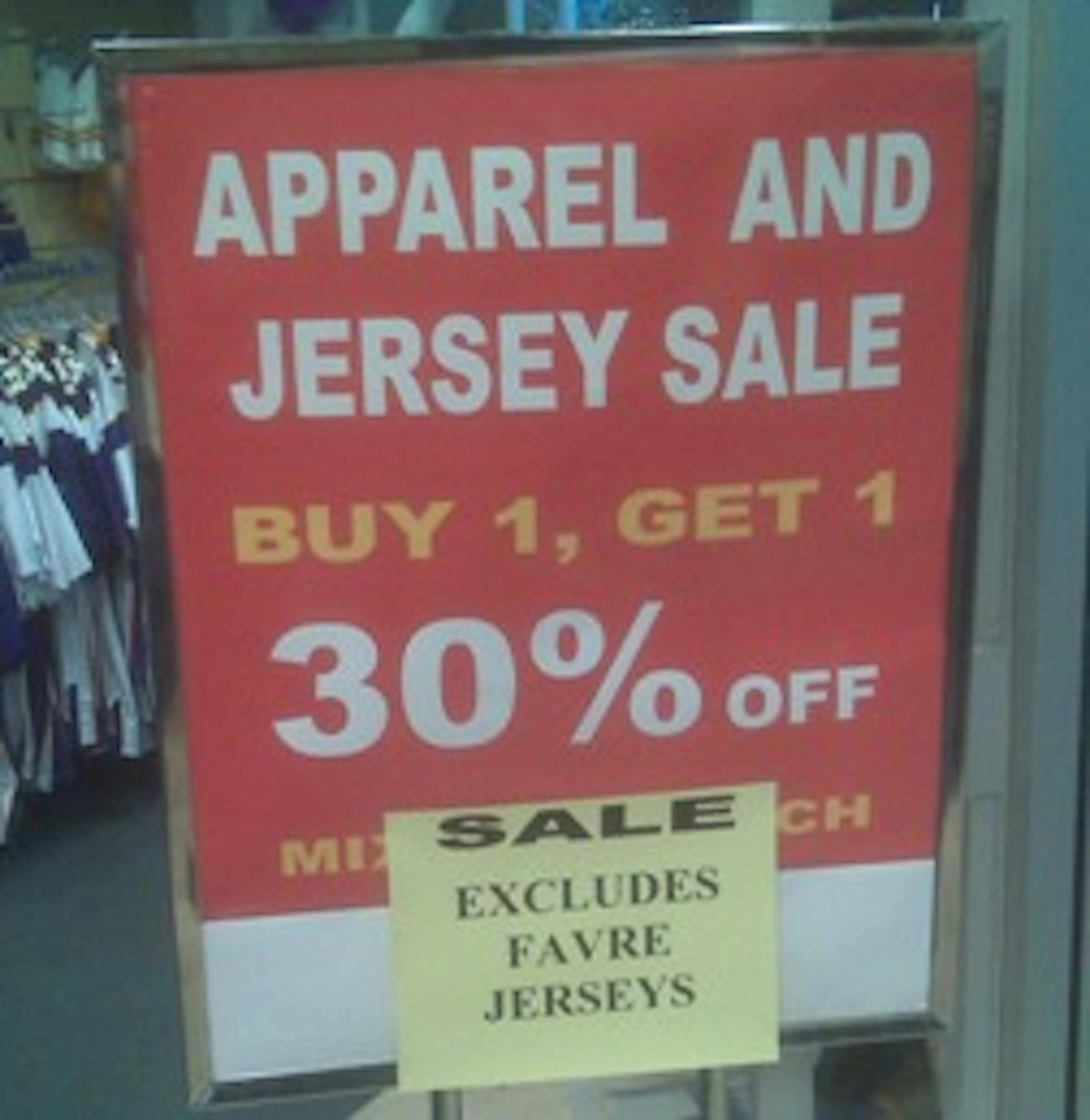 Stensation snapped that picture for us while out shopping today at a local mammoth retail outlet in Bloomington near the light rail and the place where Minnesota pro sports teams used to play. Guess it's going to be 28 or 69 (anything but 4) if you want to spend a lot to save 15 percent (see how we just cut through the hollow math!).