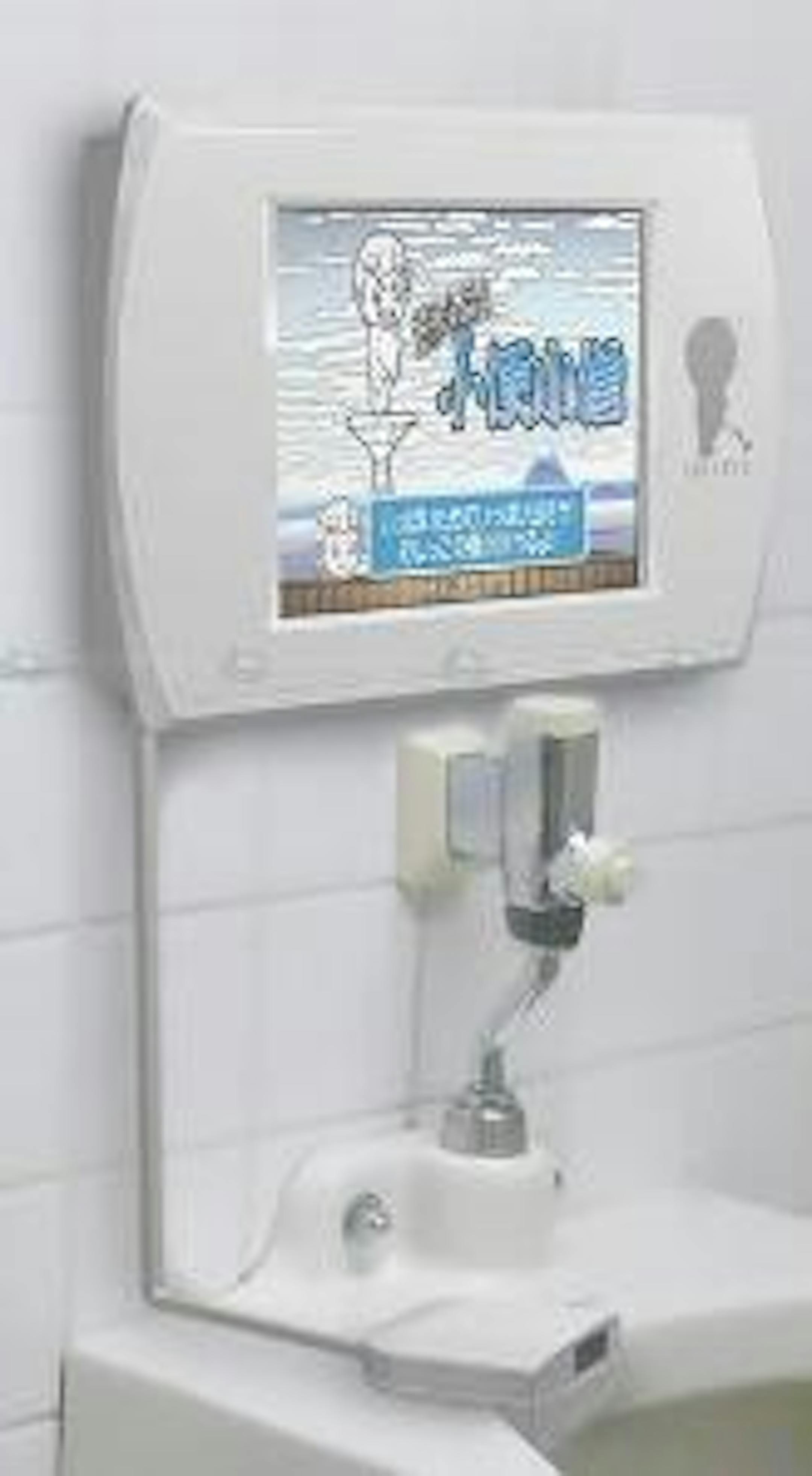 Toylets uses a pressure sensor located on the back of the urinal to measure the strength and location of your urine stream. A small LCD screen above the urinal allows you to play several simple video games including a simulator for erasing graffiti and a variation on a sumo wrestling match.