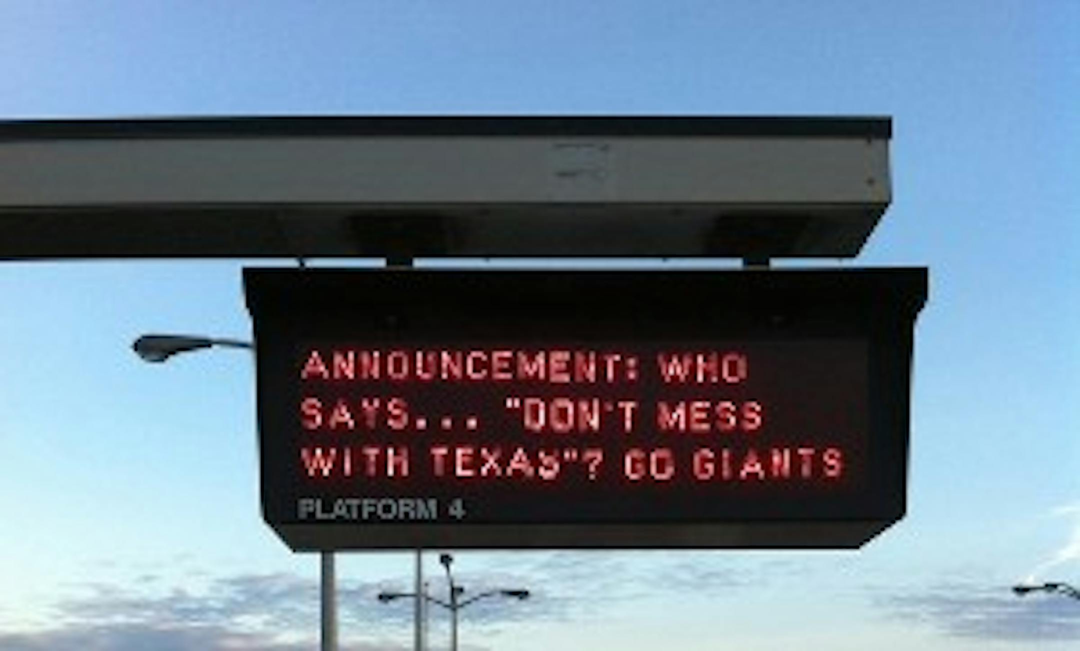 Picture via here, found by Fasolamatt. Apparently it's an electronic billboard this morning on the Bay Area Rapid Transit.