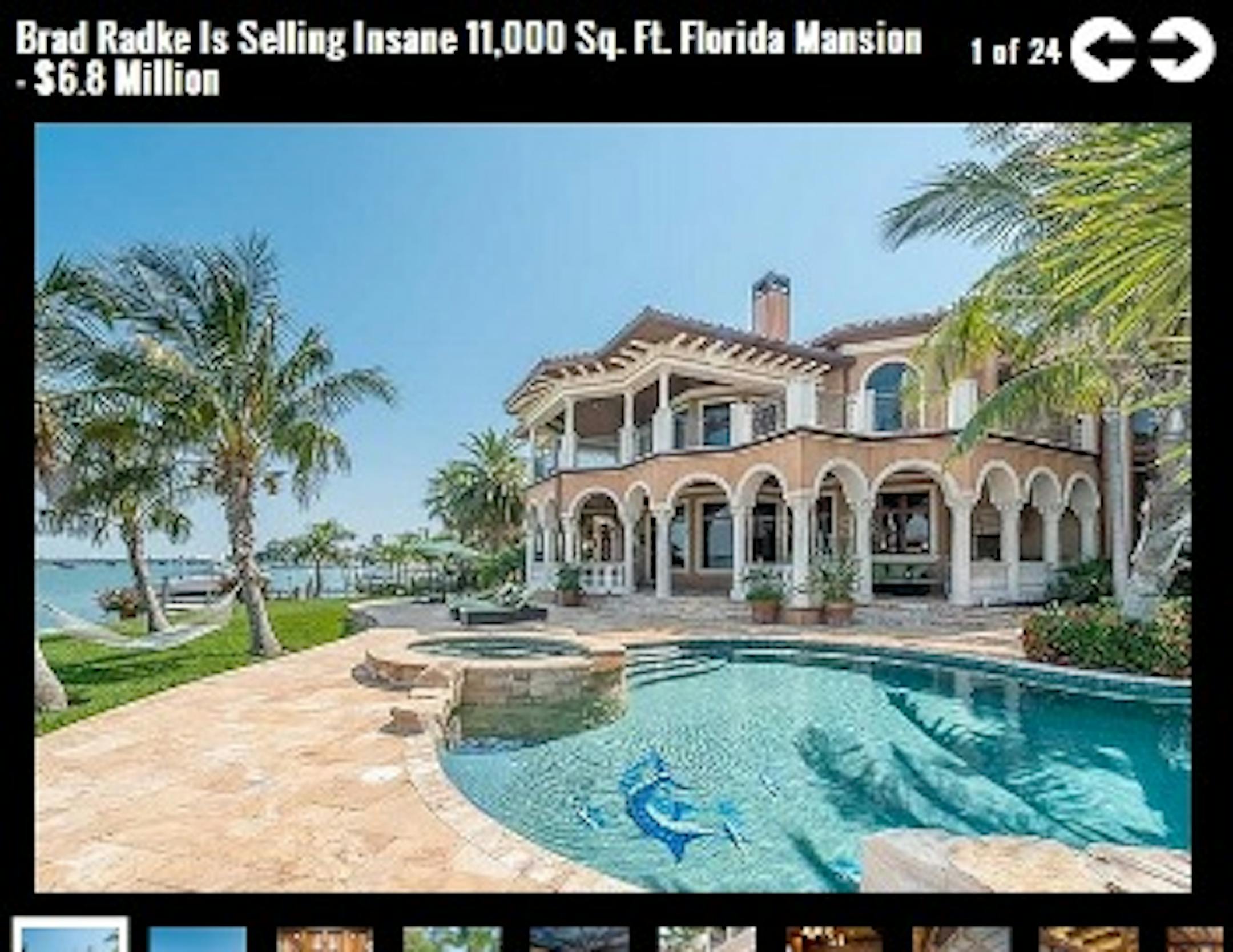 Still, it was a little bit of a shock to look at Busted Coverage today (full slide show of photos at that link) and see a report that Radke has -- and is trying to sell -- an 11,000 square foot mansion in Florida.