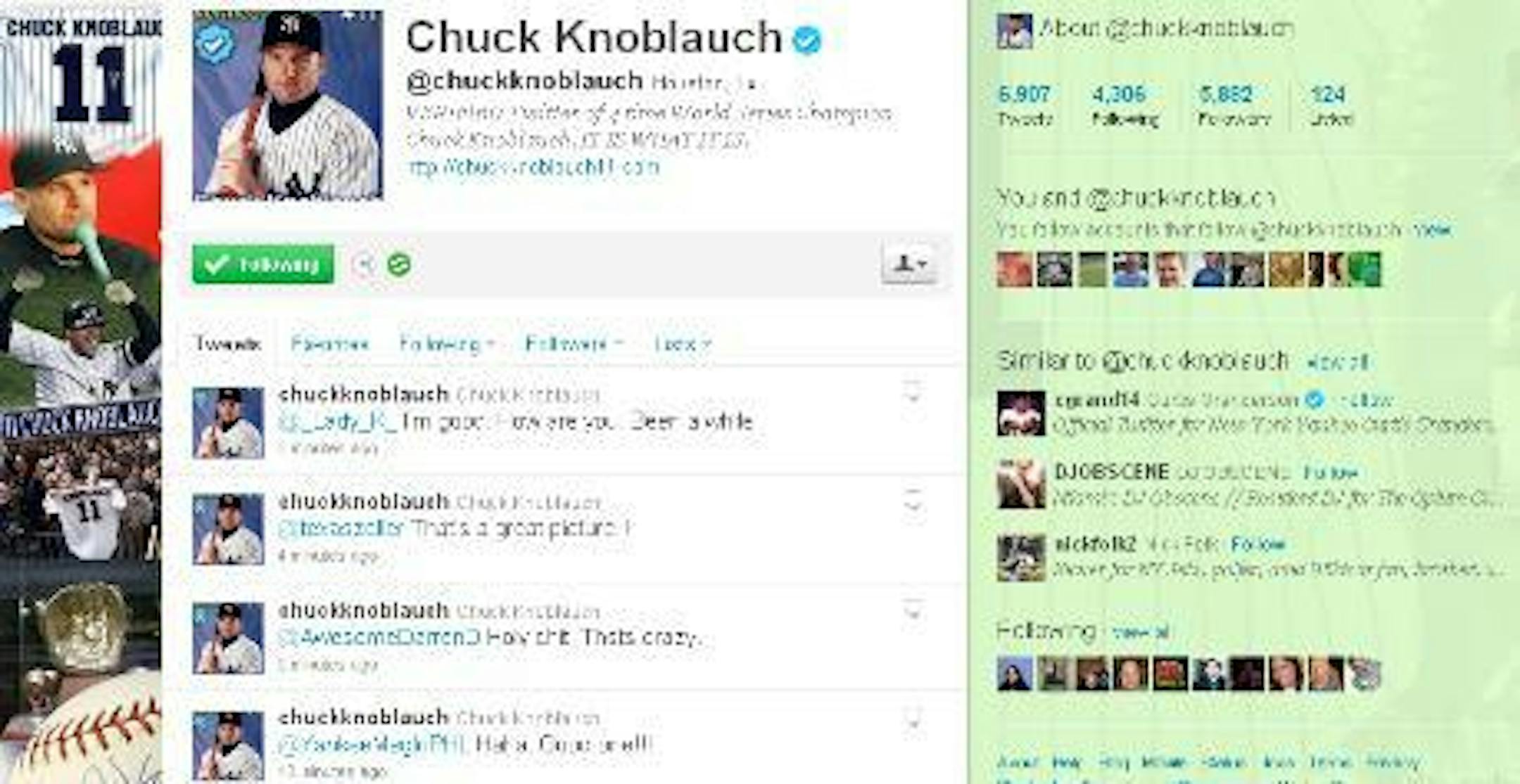 Thanks to Twitter pal @kanzkarlee we are now aware that ex-Twin Chuck Knoblauch is not only on Twitter, but he tweets roughly once every 12 seconds.
