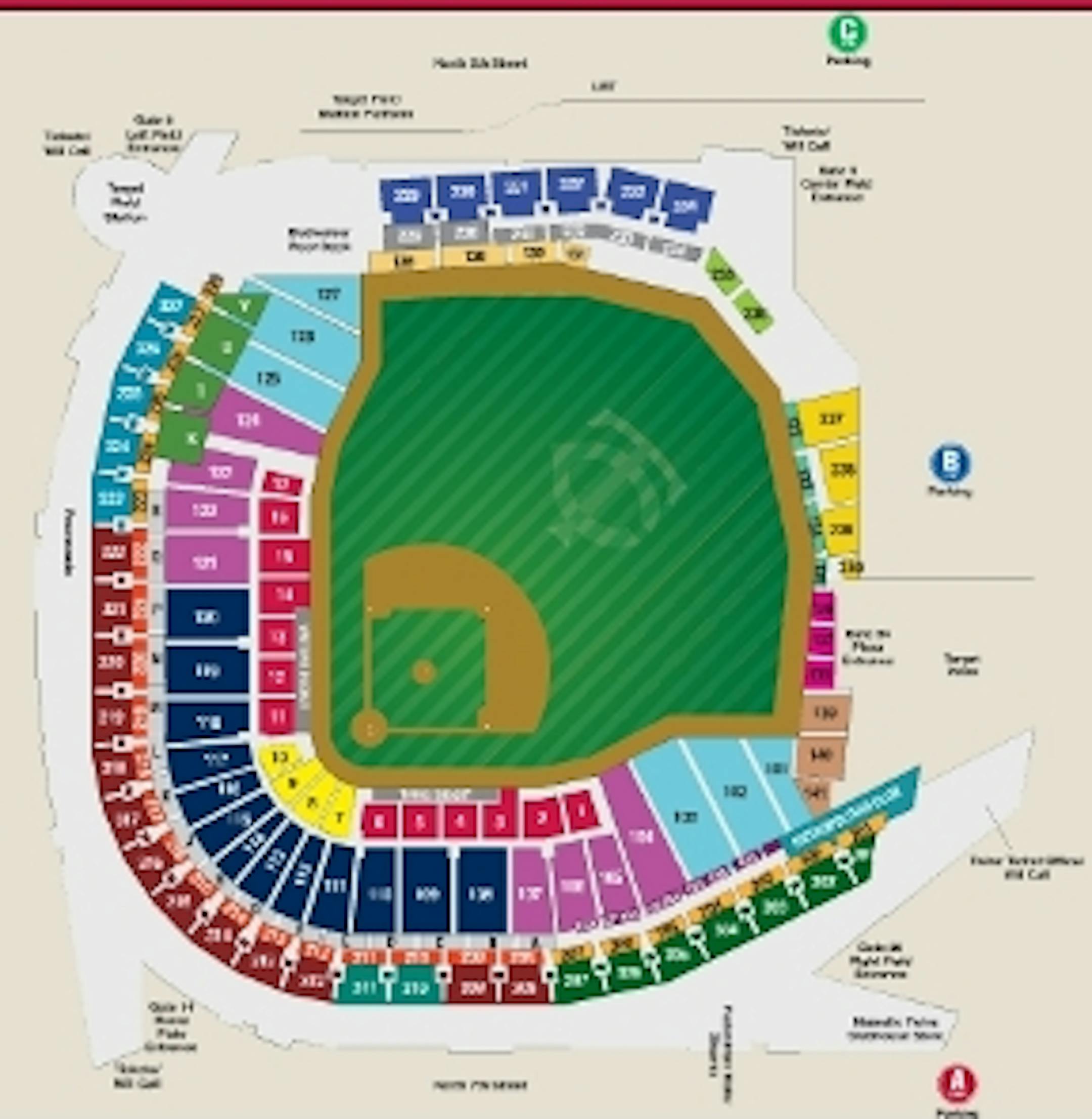 We're used to slumming it in Section 323 for most Twins games (kidding, of course, we love the Skyline View seats), but tonight we're getting a serious upgrade courtesy of commenter Newbie. It's a double date of sorts featuring the one he calls "Newbile" along with The RandBall Better Half. We're told some corporate shenanigans are allowing for us to sit somewhere in that navy blue shaded area. Nicely done, Newbie. Nicely done. We'll even throw out your question as an end-of-the-week talker:
