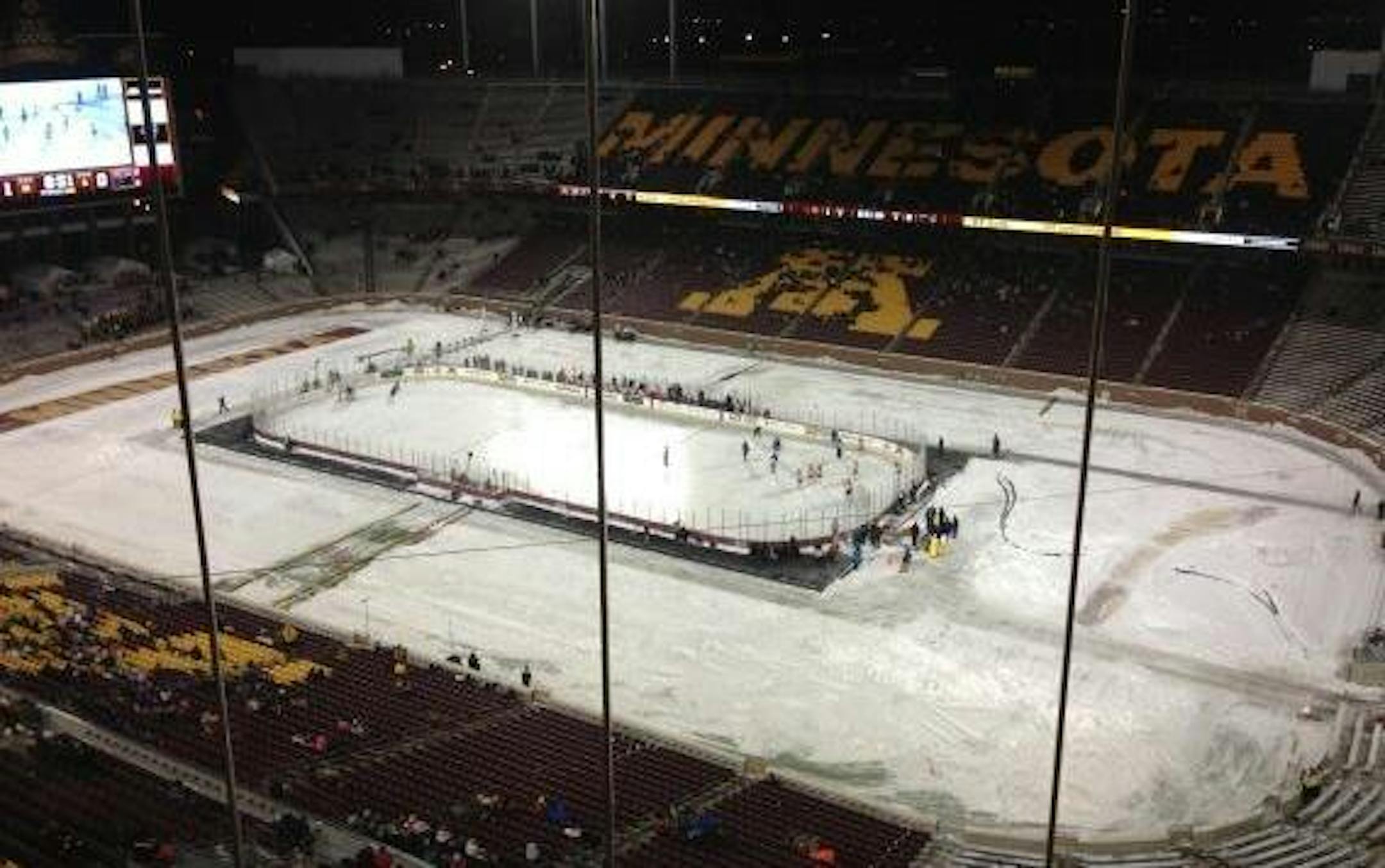Here is the first picture we took from the night -- midway through the Gophers women's game against Minnesota State, which is 3-0 Gophers heading into the third period. There's not much of a crowd here yet. We'll try to update a couple of more times as we roam the stands collecting other images and video.