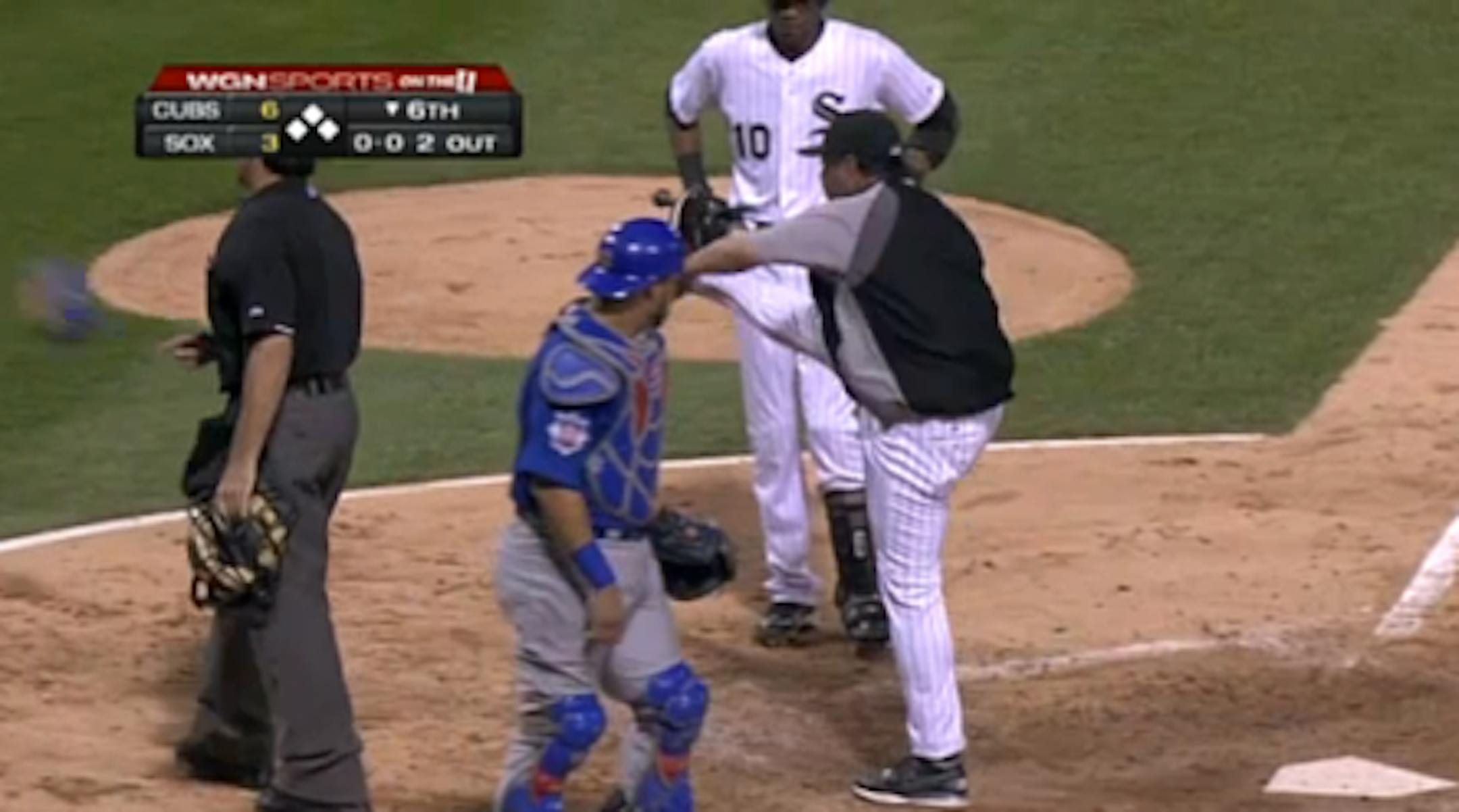 Announcers wrong. Ozzie ejected. White Sox lose. Everyone's happy. Still those guys make our blood boil.