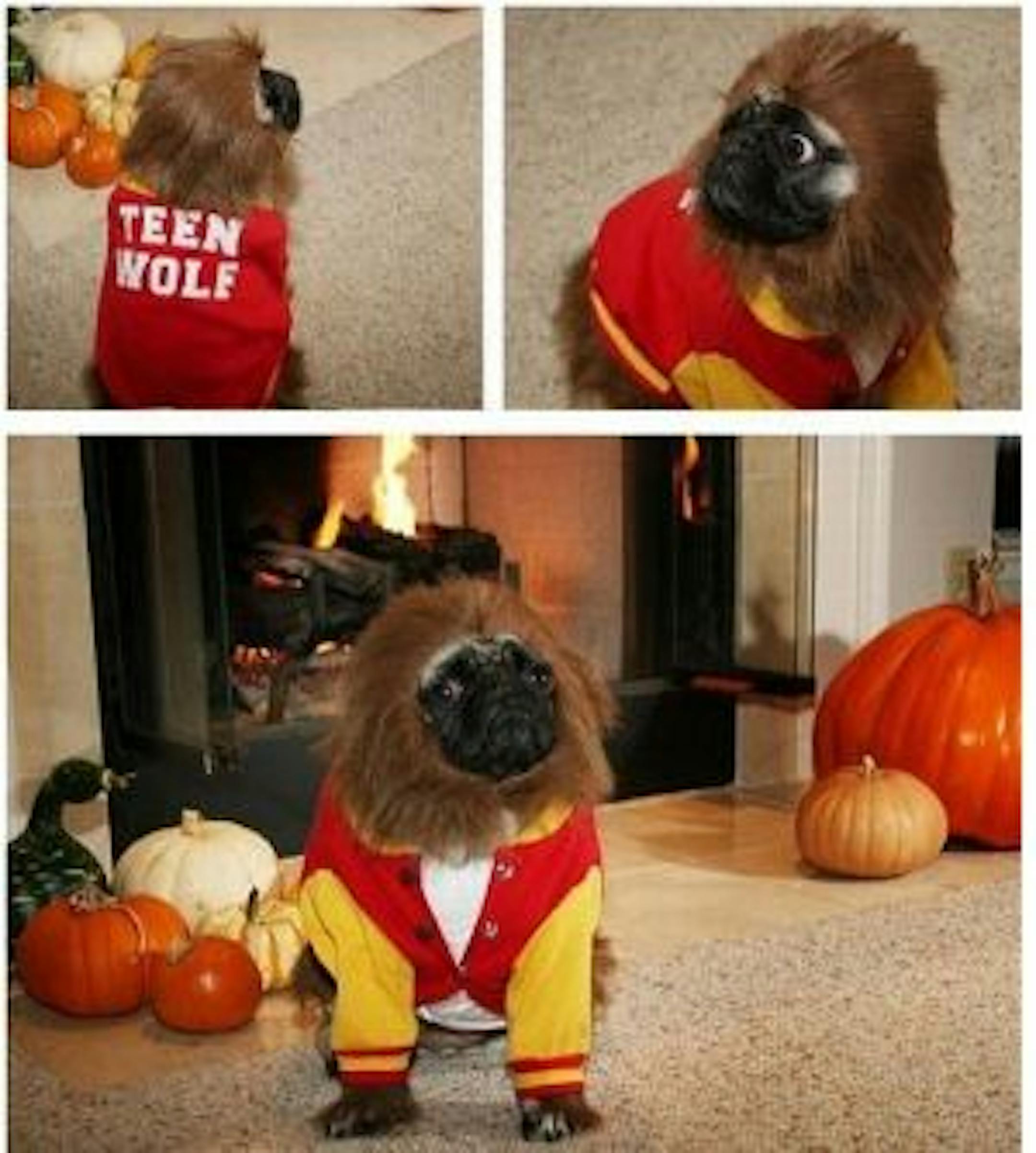 We're starting to worry that our affinity for pugs -- yes, we have one, and her name is Petunia, and no we didn't name her -- is becoming too well-known. Case in point: Roughkat sending us this picture of a pug in a Teen Wolf costume from this blog (mind the language over there).