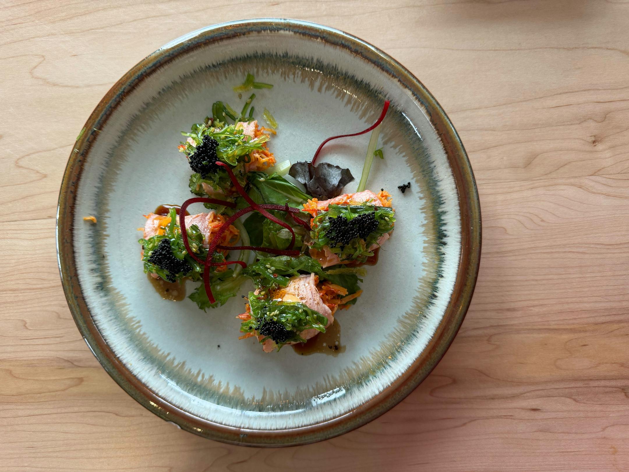 On a recent visit, we ordered the chicken khao piak ($8), a savory, aromatic chicken noodle soup. Made with bouncy, housemade tapioca noodles that slowly break down and thicken the broth, it’s served with tender chicken, herbs and pork rinds. The soup is further customizable with an array of fresh toppings and condiments, including chili oil, fish sauce, fried garlic and lime. Hearty and deeply comforting, the portion is generous, and almost tailor-made for a cold winter day. There’s also the khao piak combination ($10), which comes with meatballs and shrimp.