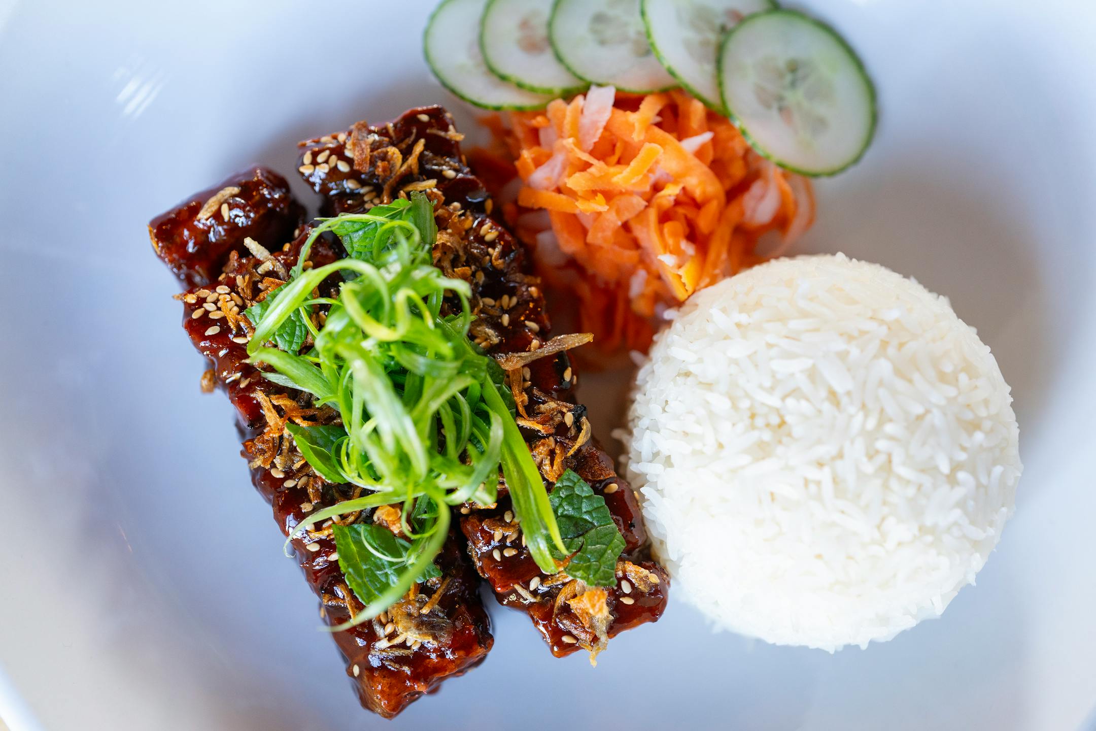 Chef Eric Pham forms marinated tofu and fried jicama into ribs that expertly (and surprisingly) mimic the taste and texture of pork ribs. The sticky soy glaze keeps the meaty illusion going, making it a top-tier vegan dish ($21).