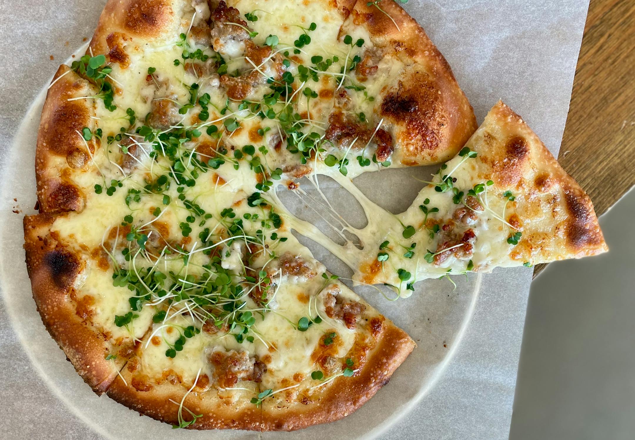 The menu centers around pizzas, which use fresh produce and travel in and out of a wood-fired oven. The pork and greens pizza ($15) is built on a Parmesan-cream white sauce base and topped with porky nubs of sausage and oozy mozzarella cheese. After baking, it's sprinkled with microgreens for a gorgeous finish. And it comes in the sweet-spot size that feeds two. I happily devoured a piece while enjoying the Grateful Dead covers that an acoustic band played on the porch, then I headed to the market to make a cabin haul. (Joy Summers)
