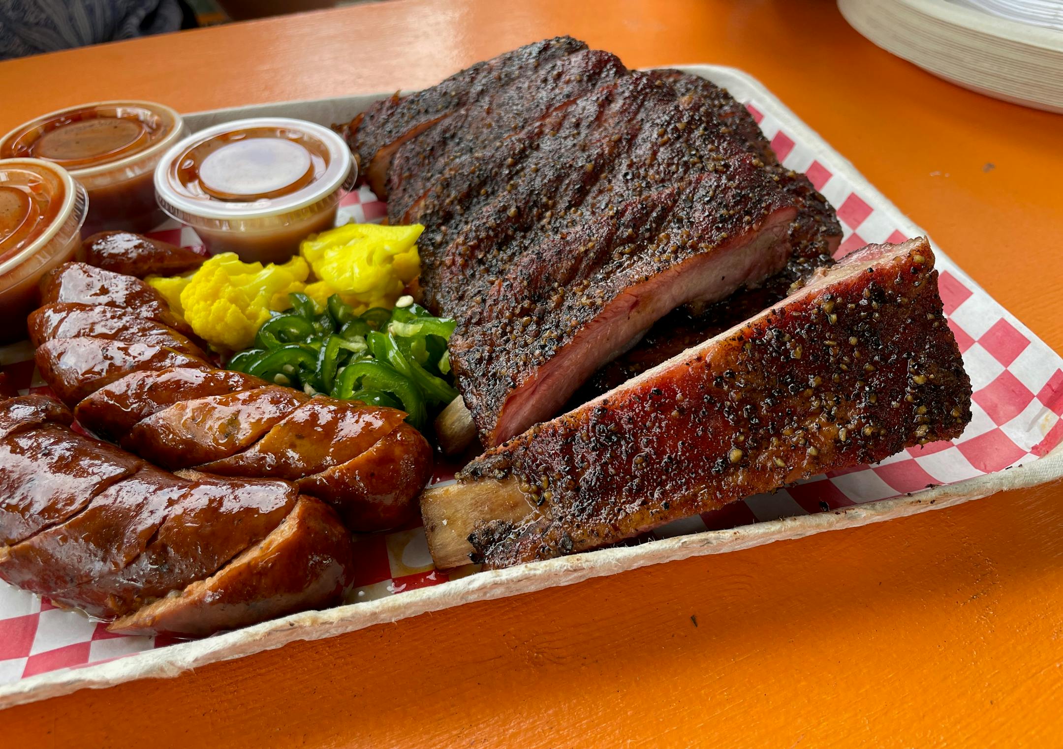 Sitting outside watching the trains roll by, petting all the sweet dogs and reclining on a picnic bench is a little slice of barbecue heaven in Northeast. (Joy Summers)