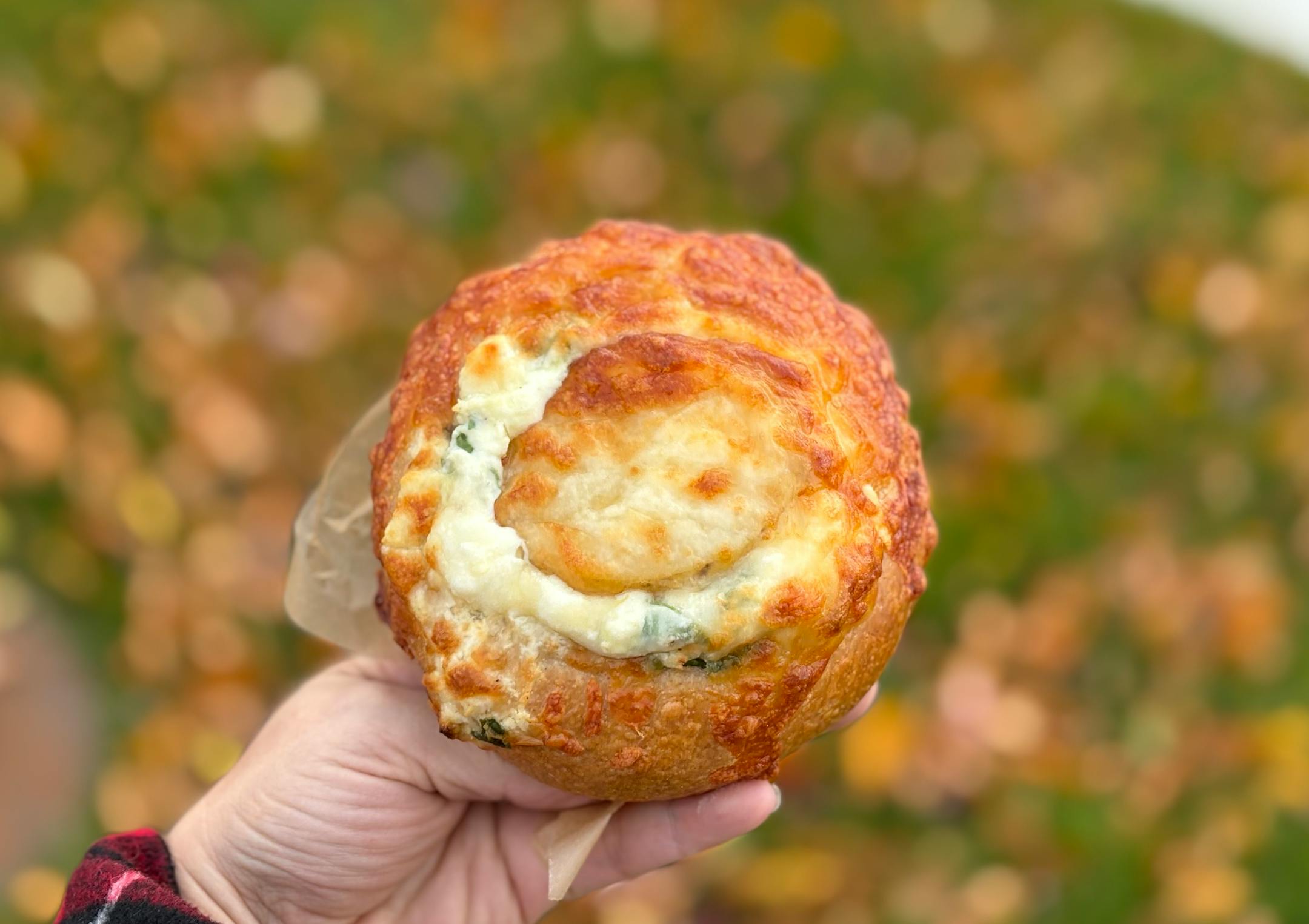 I’d already made it through a cardamom knot, sourdough s’more cookie and powerfully pungent ginger molasses cookie — and lined up a warm sourdough loaf to go — when I nearly walked out too soon. The bakers had just come out with trays of still-scorching stuffed challah buns ($7.50).