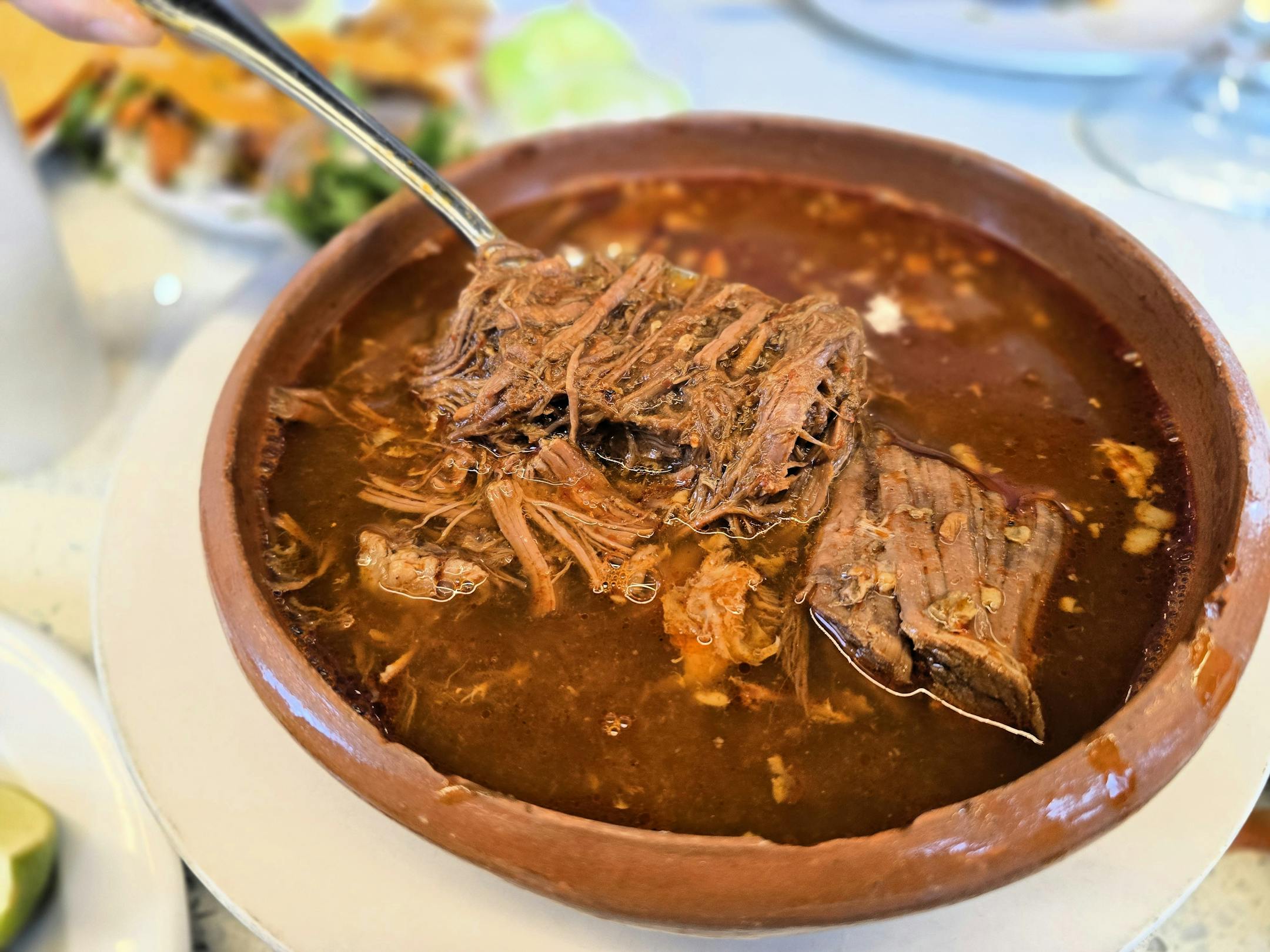 But on the coldest days, I take my liquid in consommé form. The birria is described simply as a “red sauce stew,” but don’t let them undersell it. This is the same rich broth that comes alongside the restaurant’s popular fried birria tacos with cheese. Here, glossy red broth fills a wide clay bowl, brimming with braised meat a spoon can easily reduce to shreds. I ordered the beef, but you can also get goat or lamb, all $15.99 and served with a side of warm tortillas. It’s a huge portion, and fortifying enough to get back in the line of traffic and continue with the day’s to-do list. (Sharyn Jackson)