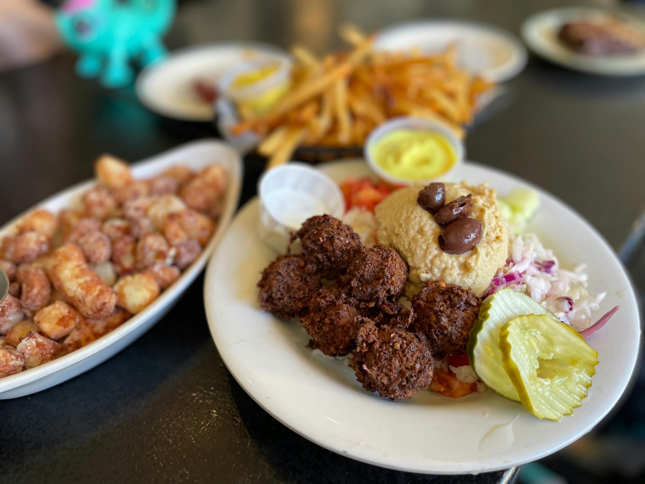 I chose Fhima's for my first outing, happy to revisit the always-stunning Art Deco masterpiece that is the former Forum Cafeteria. Chef/owner David Fhima is having as much fun as ever with the lunch menu. The classic grilled cheese ($15), which comes oozing out of brioche that's been slathered with comforting shakshuka sauce? Get it. The lobster bisque ($11/$19), rich and thick, that just happens to be the perfect dipper for fries? Do it. And a Moroccan-spiced chicken sandwich ($18) that replaces a bun with two Liege-style waffles, the kind that have the little pearls of sugar baked in? Revelatory.