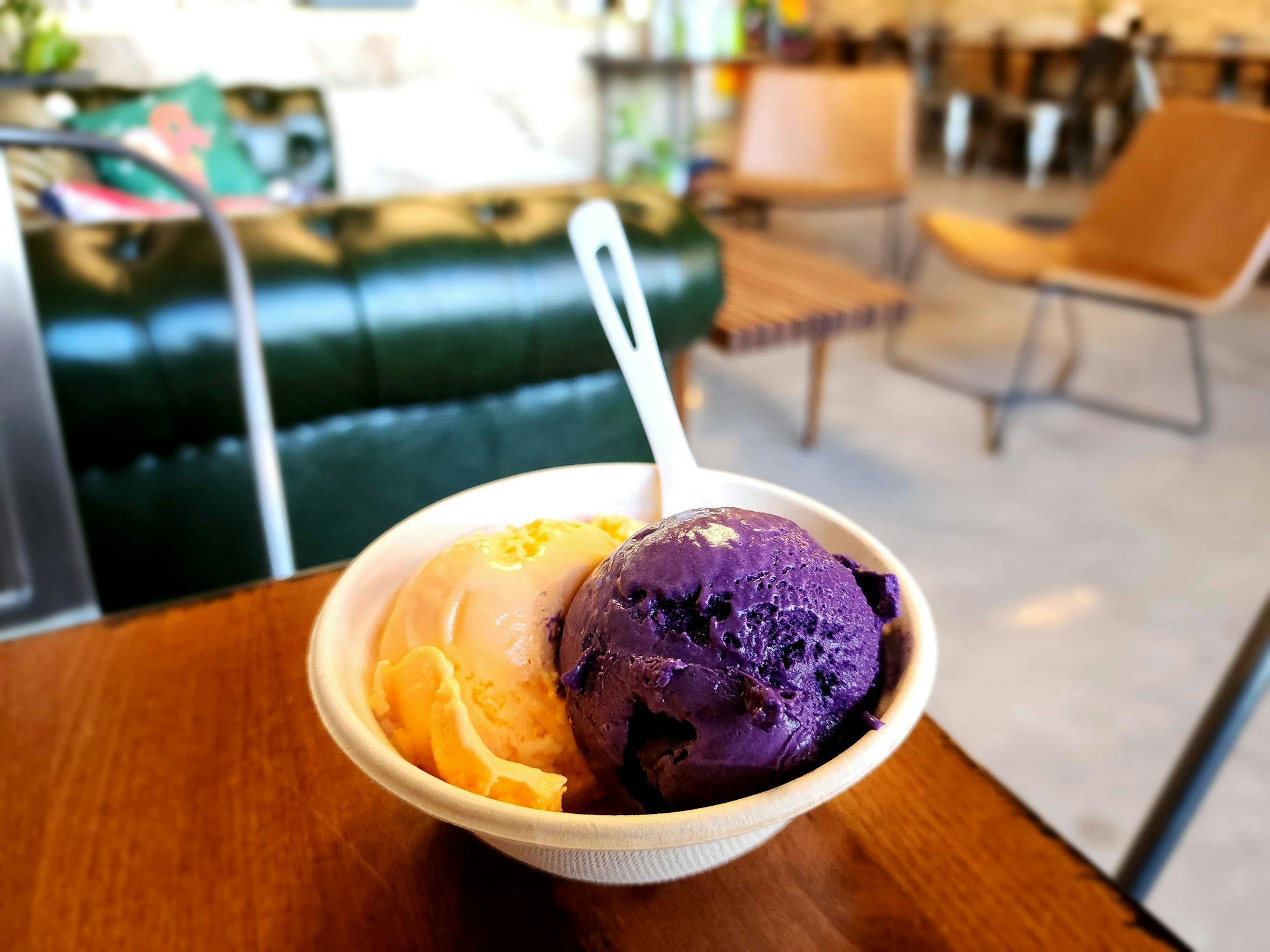 Ube and orange ice cream from Fletcher's Ice Cream & Cafe