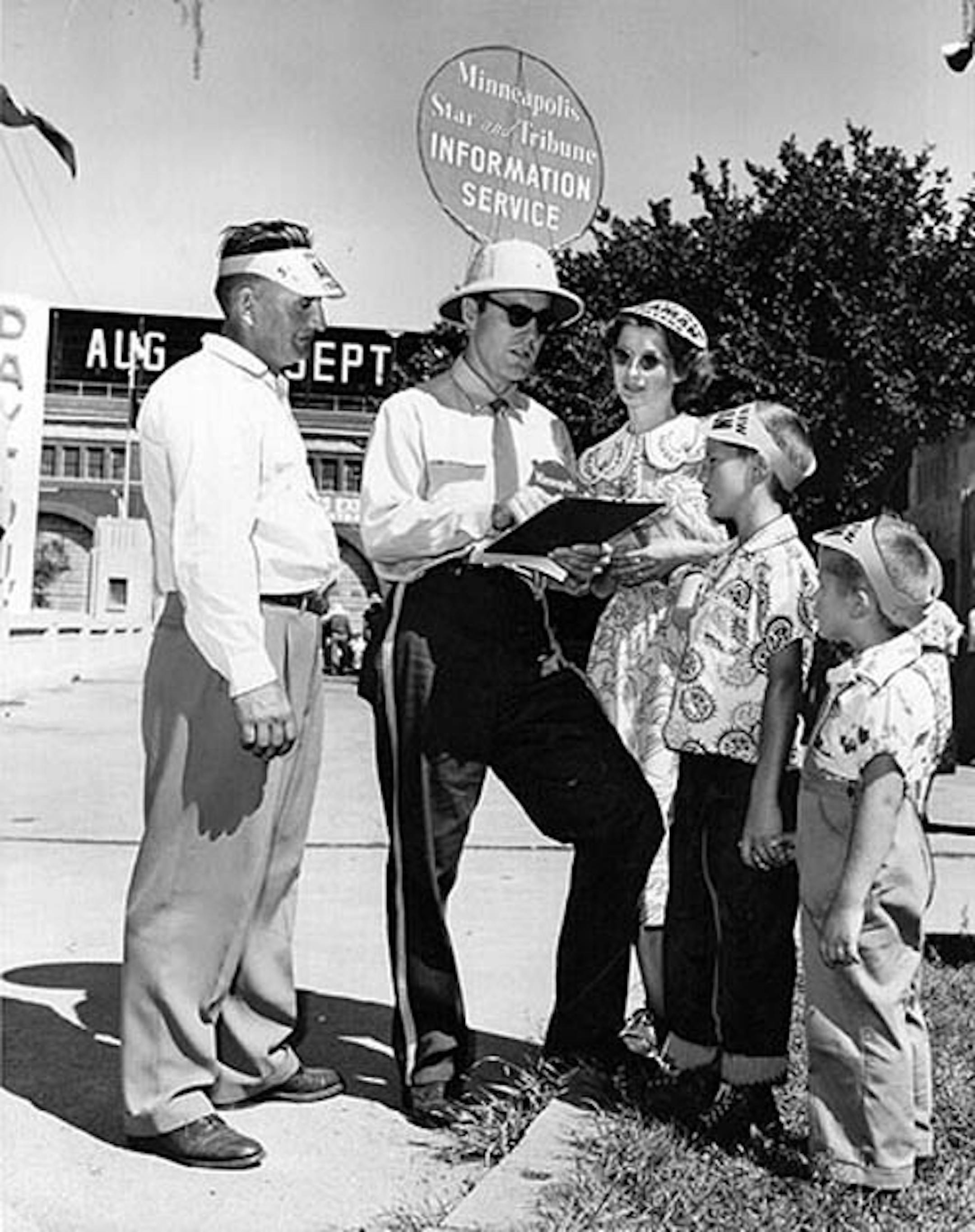 Mr. Answer Man. He walked around with a sign on his head. People asked him questions. Now we have a large structure at the base of the Grandstand ramp, where questions can be posed and disposed by our army of experts. The days of a lone lanky guy in a pith helmet walking around with an expectant look are over. I think he should be incorporated into a Fair app, though. He'd be perfect, sitting in the corner with a word balloon containing one of those "Did you know?" tips.