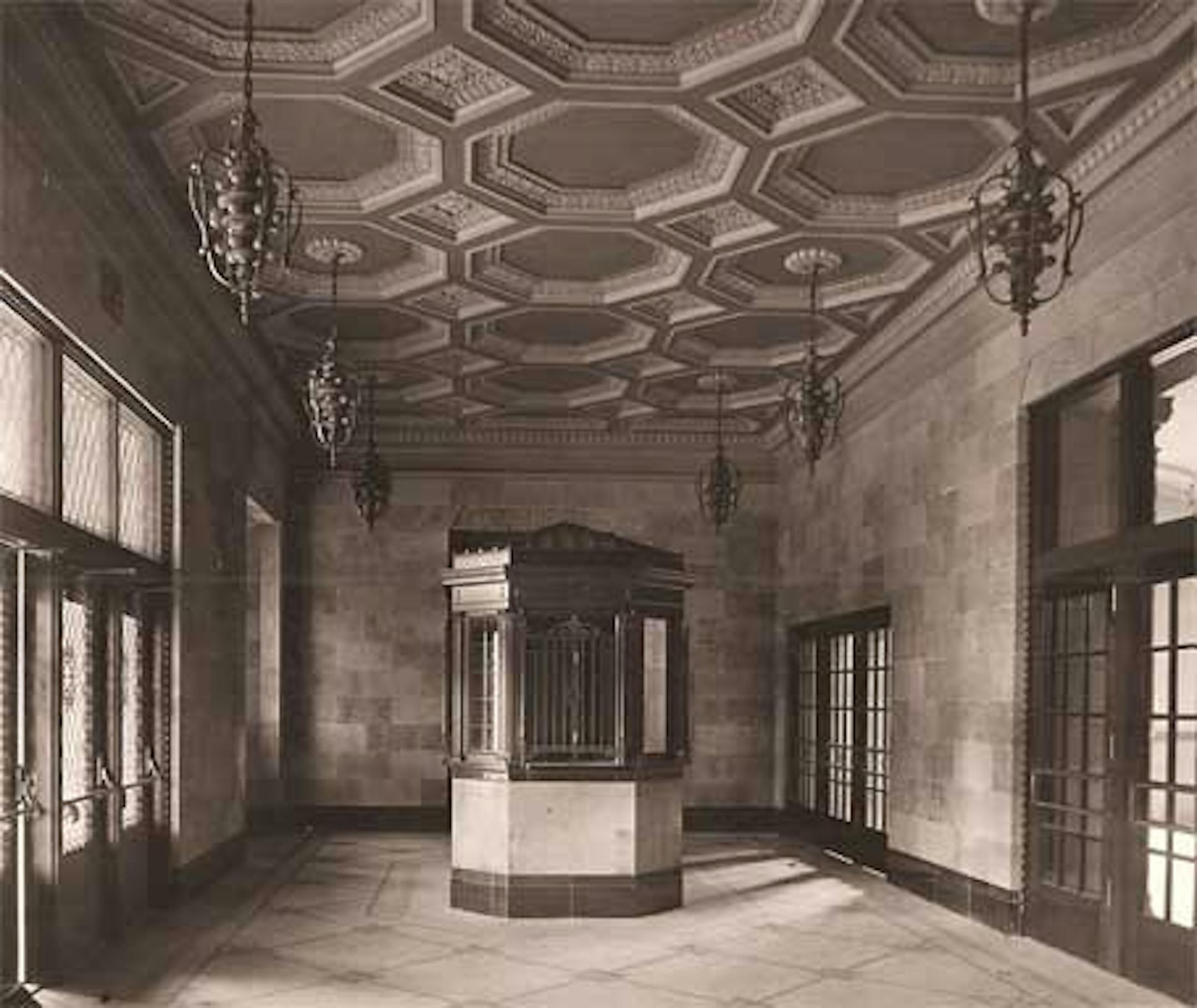 If the previous post left you asking "why, why can't someone put up some original newspaper photos of the bygone, forgotten Auditorium's architectural details?" I am here to help. I went looking for more on "Peacock Alley," found nothing, but turned up some original shots of the interiors. Here's the ticket booth: everyone had to use this one. This . . . one.