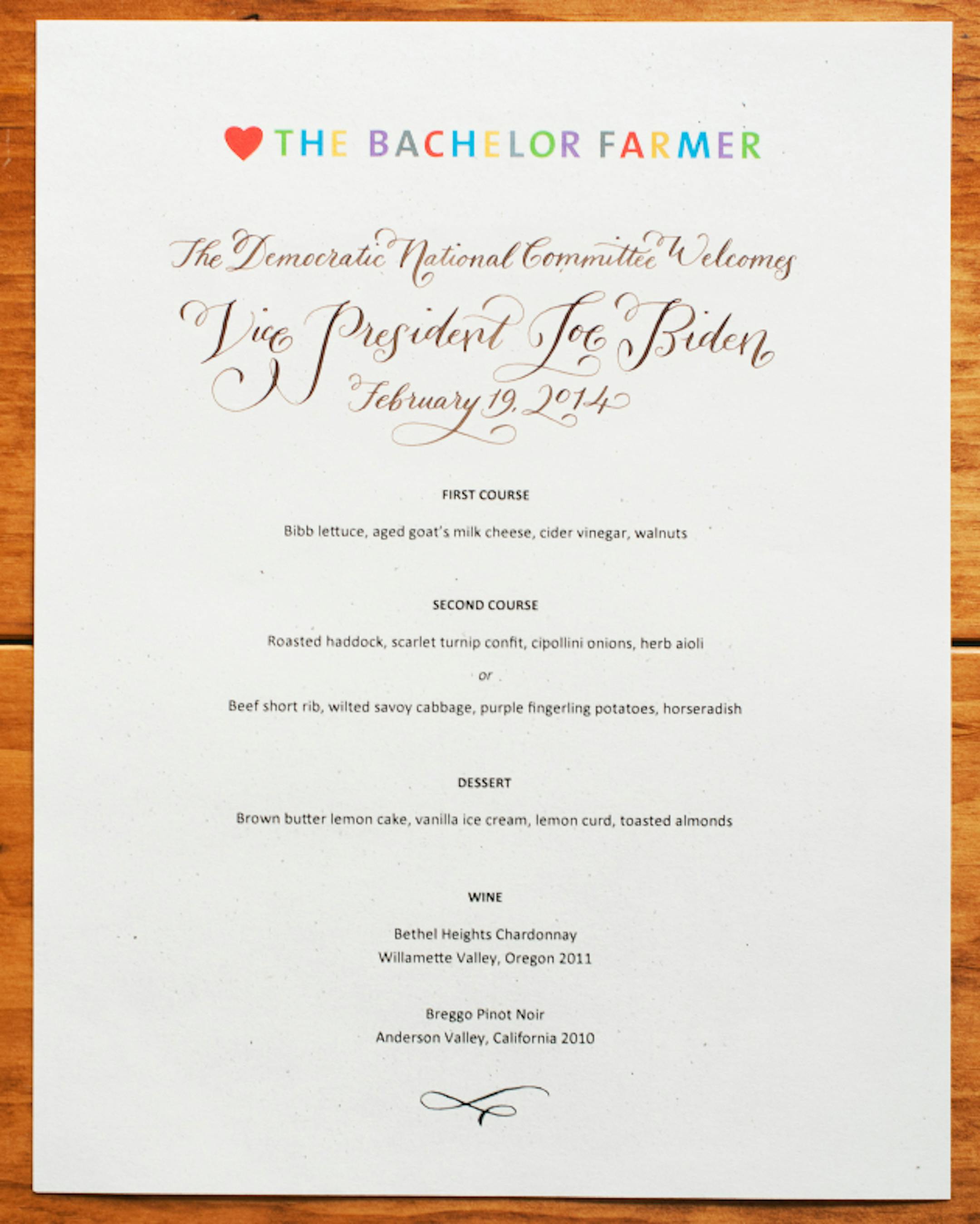 What do you serve when you've got a Vice President at the dinner table? The Bachelor Farmer delivered when Joe Biden stopped by Wednesday night for a fundraising event, after stopping earlier for a press moment at nearby Moose & Sadie's coffee shop.