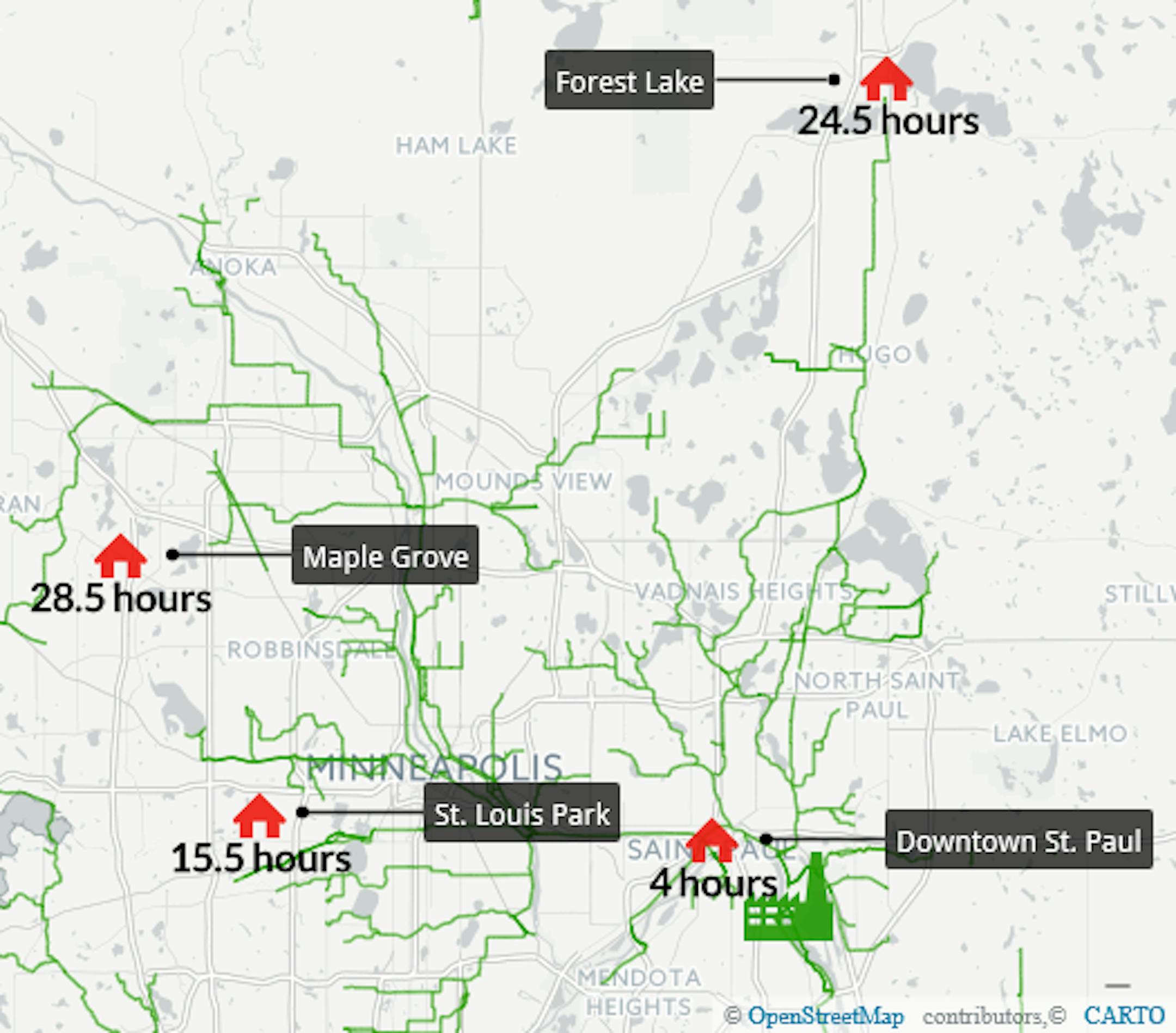 Not everyone's waste reaches the plant in the same timeframe.Flush a toilet in Maple Grove and it might take 28.5 hours to navigate through the council's interceptor pipes, compared to just four hours from downtown St. Paul. That's based on an assumed speed of two feet per second.