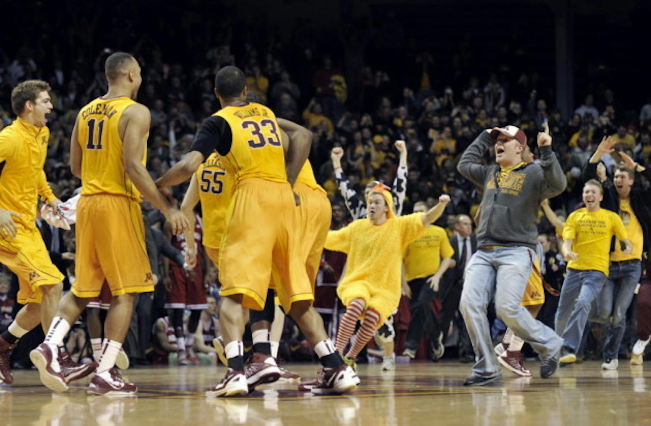 Indiana fans saw what Gophers fans (and everybody else for that matter) saw: Cody Zeller was not Cody Zeller. Particularly after Zeller's early-game slam dunk attempt was monster-blocked by Trevor Mbakwe (described as Mbakwe being "possessed" on ESPN) . Of course, the play sent IU fans into a tizzy, because in their minds Mbakwe "fouled Zeller into the third row" and he was given "the Shaq treatment" all game long.