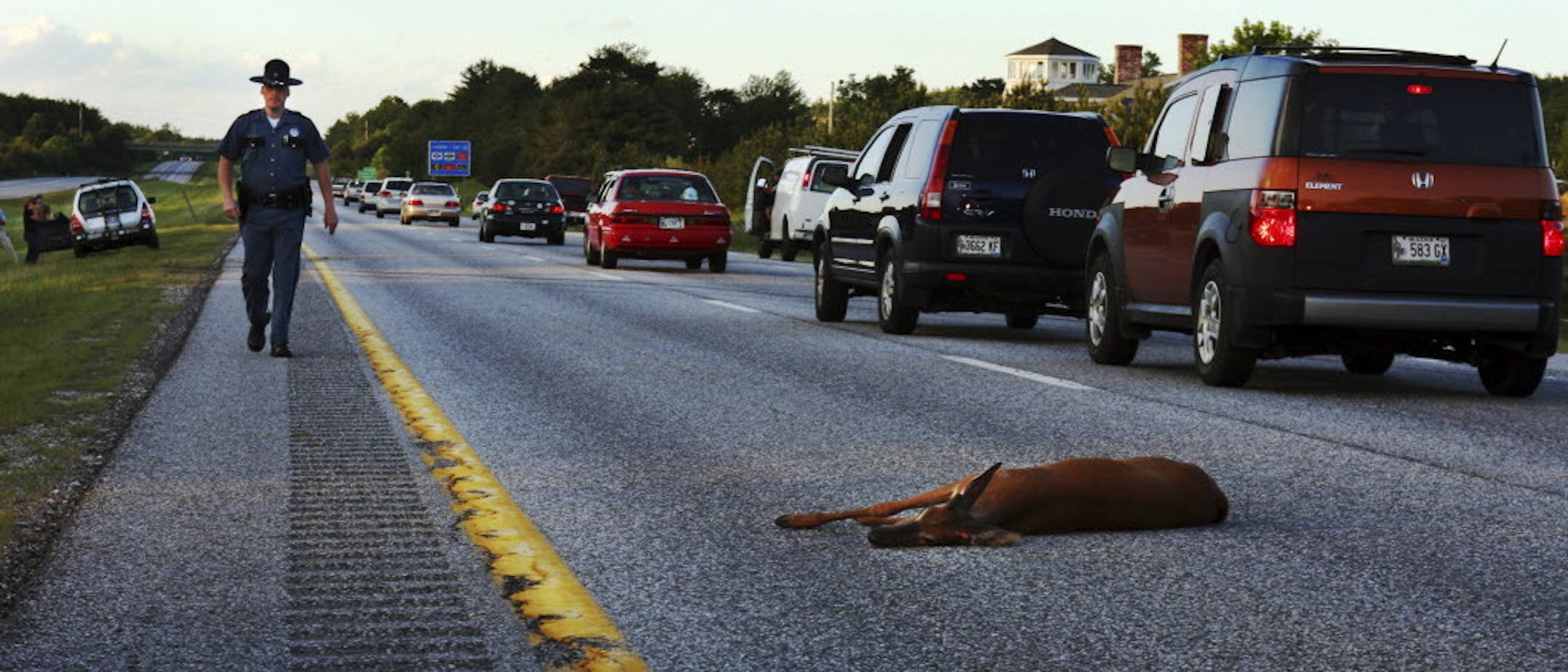 "Deer are not an uncommon sight along our roads, and they tend to do unpredictable things, like stop in the middle of the road, or cross and quickly recross," said Lt. Eric Roeske of the Minnesota State Patrol. "Motorists and [motorcycle] riders need to stay focused on the task at hand, and drive or ride defensively by looking for reflecting deer eyes and silhouettes, especially during lowlight times and in forest and farm areas."