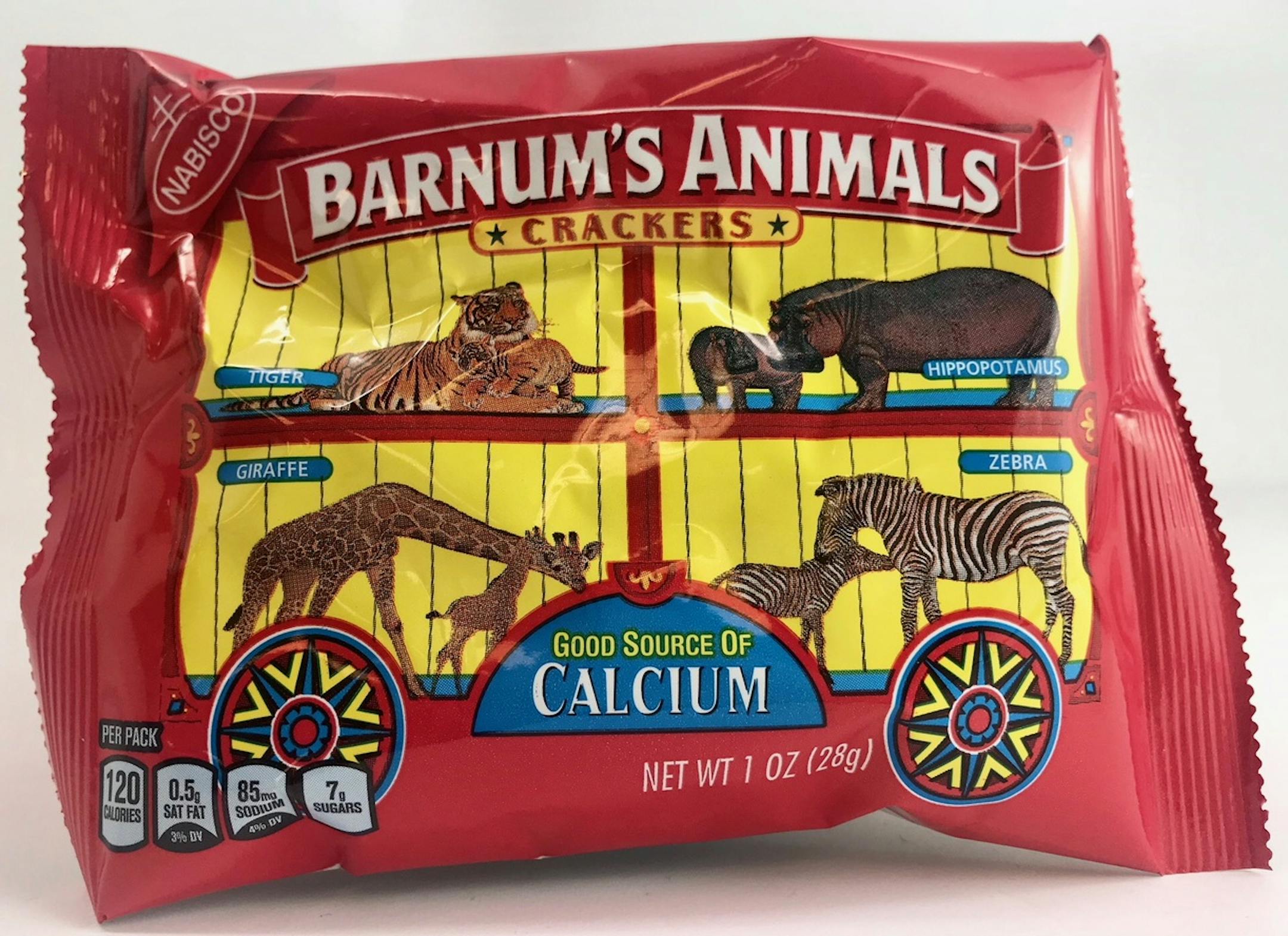 The cages are gone and the animals roam free on boxes of the famous Nabisco snack Barnum's Animals Crackers, on the market since 1902. People for the Ethical Treatment of Animals (PETA) had been urging the parent company, Mondelez International, for a change since 2016. In the meantime, Ringling Brothers and Barnum and Bailey circus closed permanently and more than 80 U.S. cities have at least partly banned circuses with wild animals, according to news reports. The new box cover shows a zebra, elephant, lion, giraffe and gorilla in a grassland.