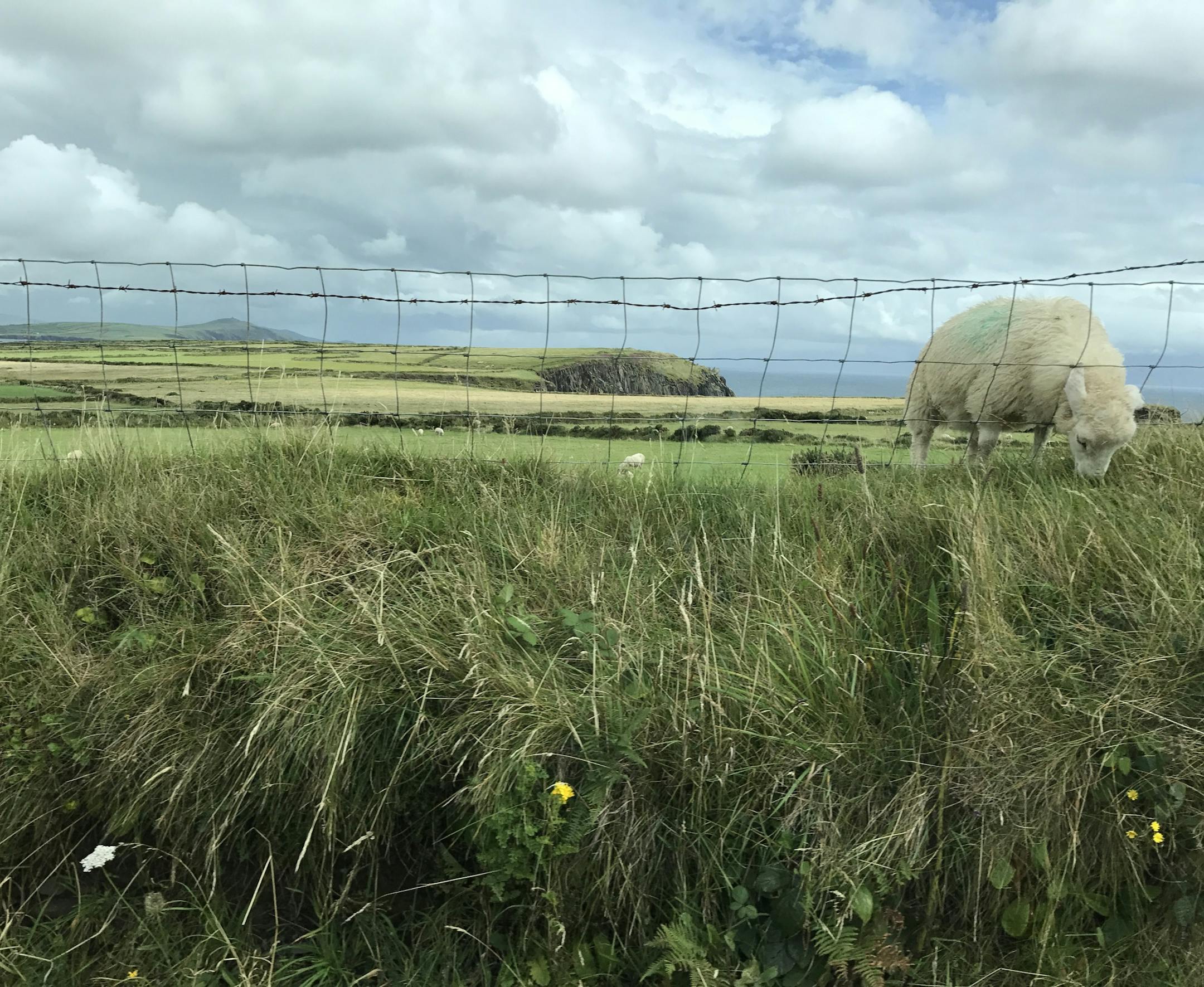 The scene: A sheep poked its head through a fence to munch grasses in Ireland's lush County Kerry, where sheep fields blanket the land.