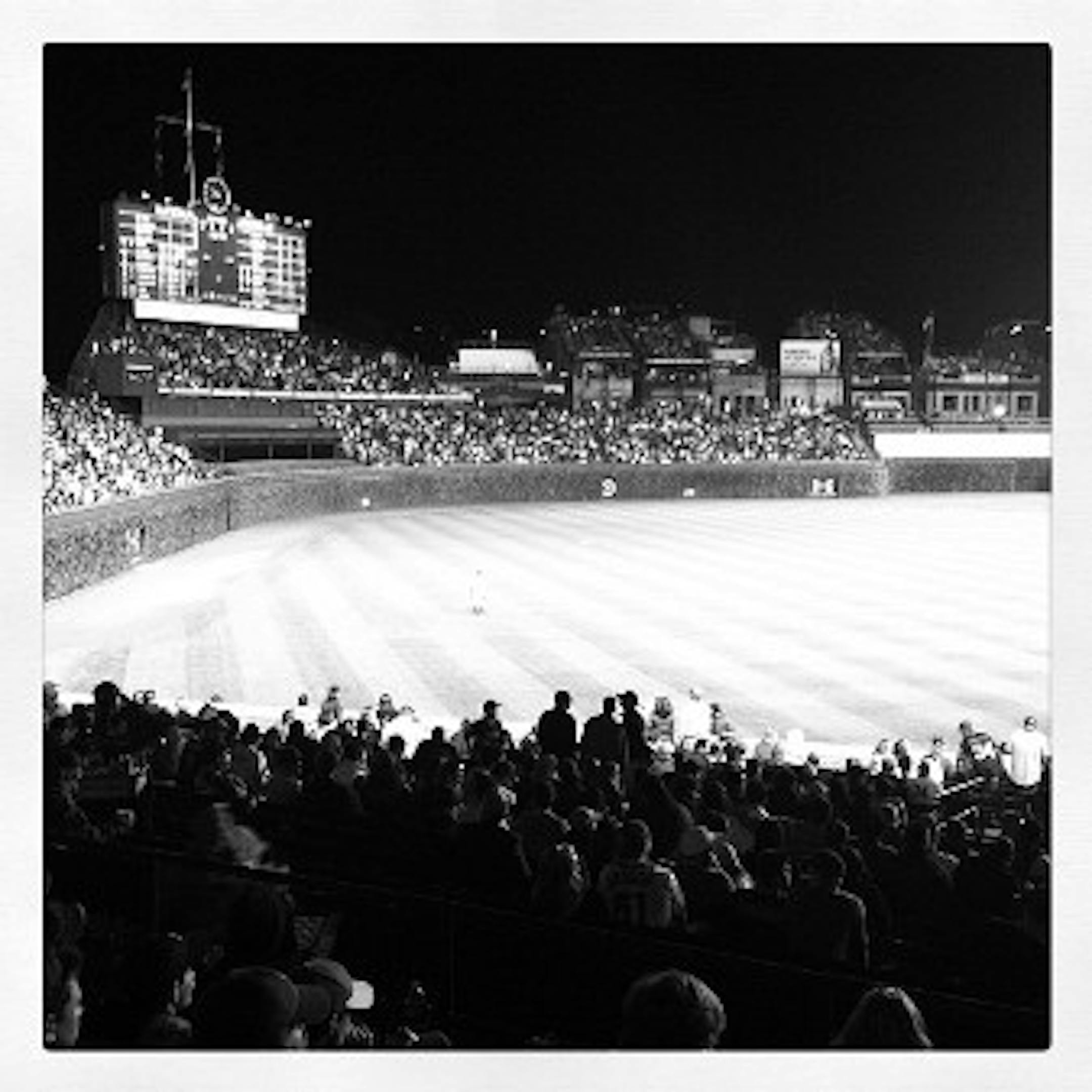 We're kind of weirded out to say this, but until last night's game (picture, right) we hadn't been to Wrigley Field in nine years. Maybe that sounds like a #firstworldproblem but when you have a ballpark so gorgeous just a one-day drive or short flight away, it needs to be visited more often. The good part, we suppose, is that we had largely forgotten -- at least from a sensory perspective -- what it feels like to go to a Cubs game. Because we have a car on this trip and because we were staying in the far north burbs in order to (hopefully) avoid Friday morning traffic when heading toward Milwaukee, we had to drive to the game. We parked waaaaay far away, not far off Addison, and embarked on a long trek to the park. But in doing so, again, we were reminded how that trudge can be part of the experience. The closer we got, the more fans converged until we all reached a pinch point trying to cross the final street with Wrigley beckoning just beyond. While we enjoy the walk through downtown to Target Field, there's nothing quite like a Major League ballpark popping out of nowhere, as Wrigley seems to do from every direction.