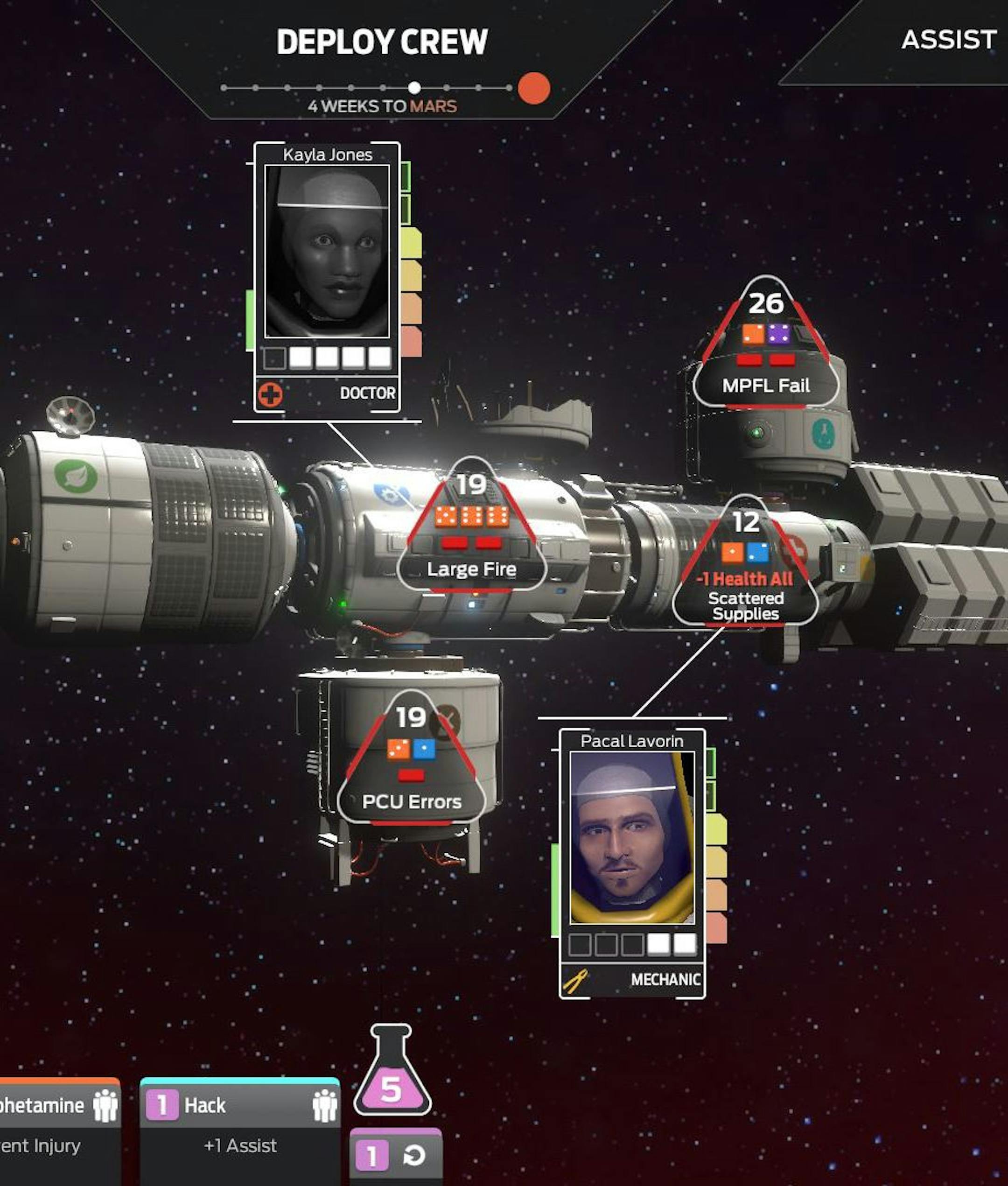 5 Timed to the video release of "The Martian," the downloadable strategy game "Tharsis" also concerns a disastrous trip to Mars. On this one, though, you might have to resort to eating former fellow crew members just to survive. In each round, various crises surface on the ship. You must decide where and how to deploy crew members to deal with the problems and avoid a game-ending disaster. A roll of virtual dice determines the outcome. This simply presented game manages to be oddly addictive.