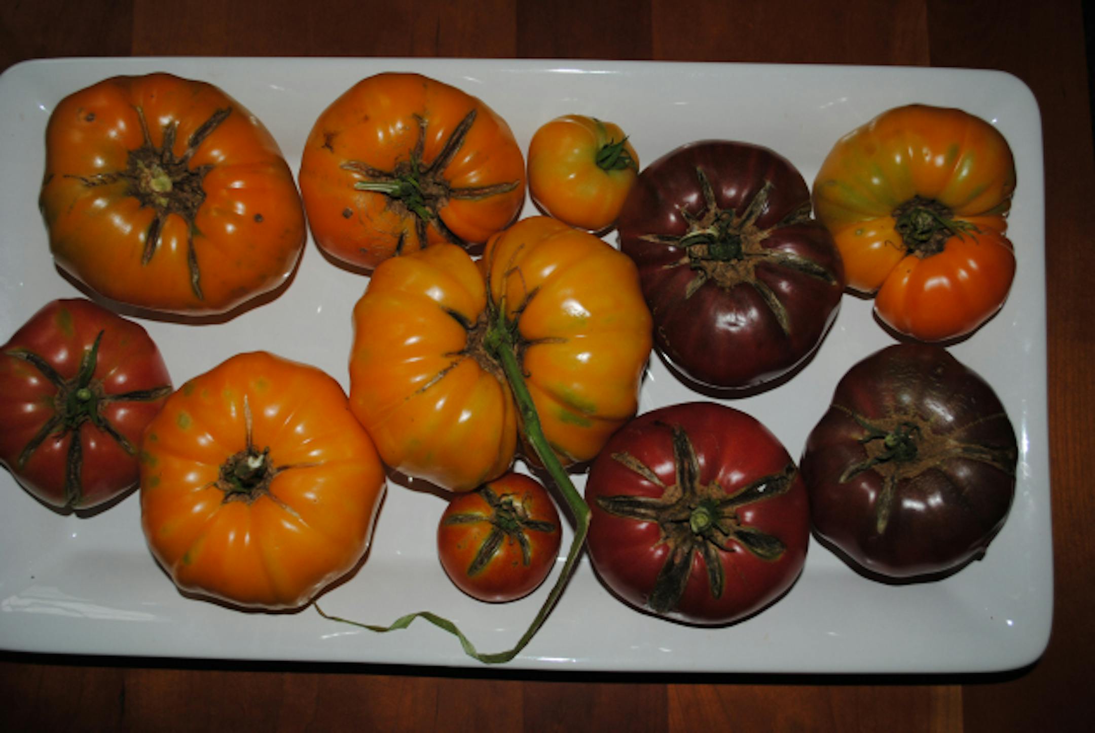 For me, this hasn't been a big tomato year, but it has been the year of the big tomato, maybe because they've been so well concealed on the vines they've had more time to get enormous. They're not winning any prizes in terms of looks, but they're surprisingly juicy and flavorful for something so big. The monster in the middle of the platter below weighed in at 1.25 pounds. But again, I have to wonder: How does something the size of a Nerf ball manage to evade my daily patrols? I guess that helps them escape the notice of marauding squirrels, too.