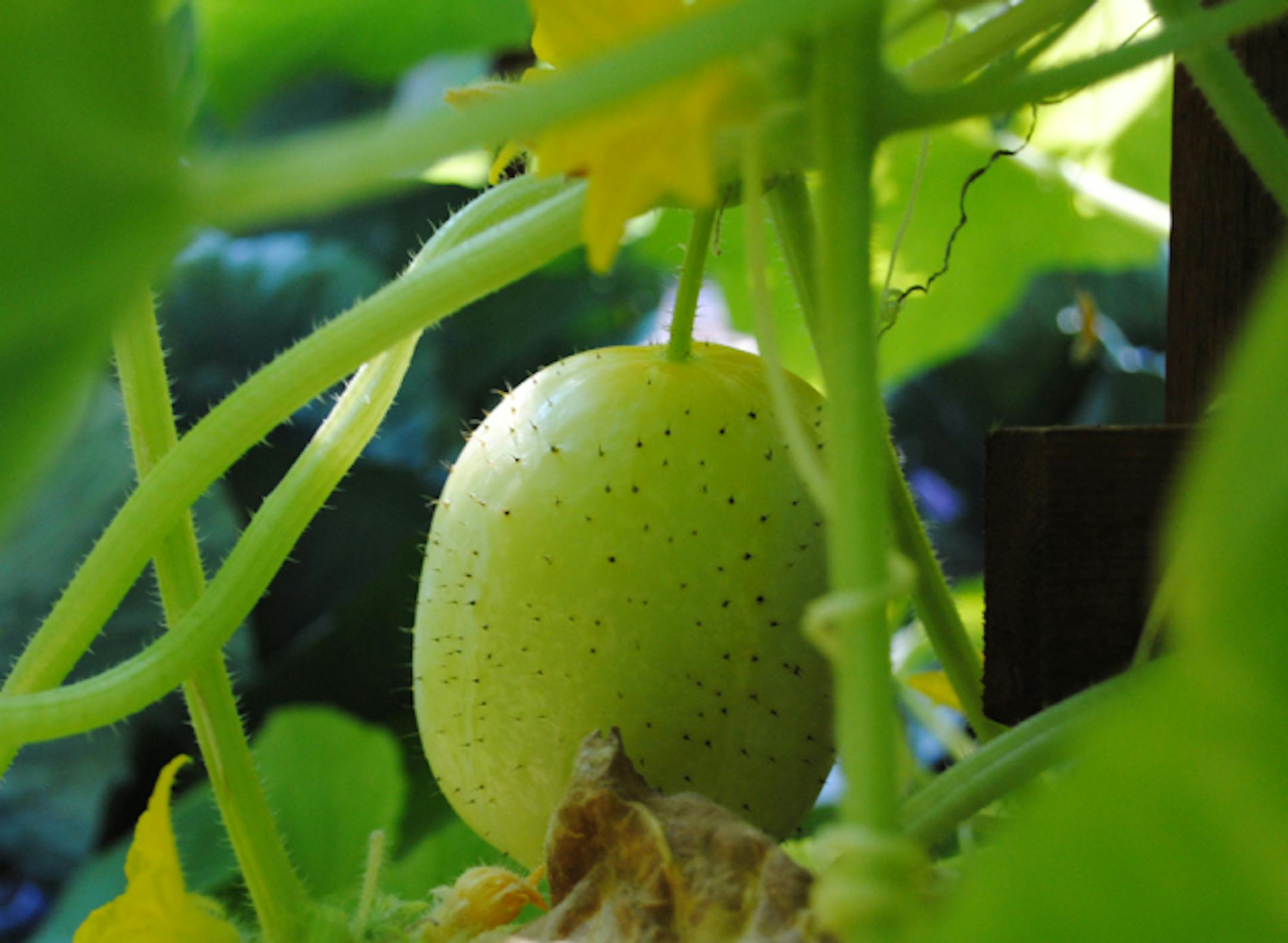 How is that vegetables hide until they're almost overripe before you find the first one of any crop? And then there they all are, one bigger than the last when you never noticed any of them until the day before? It's about to be lemon cucumber season again at my house, and as always, it snuck up on me. I'd seen oodles of blooms for weeks, but no sign of fruit when I peered through the big leaves and pawed my way past their bristly stems. But once I caught sight of the first one, there was the second, and another and another.