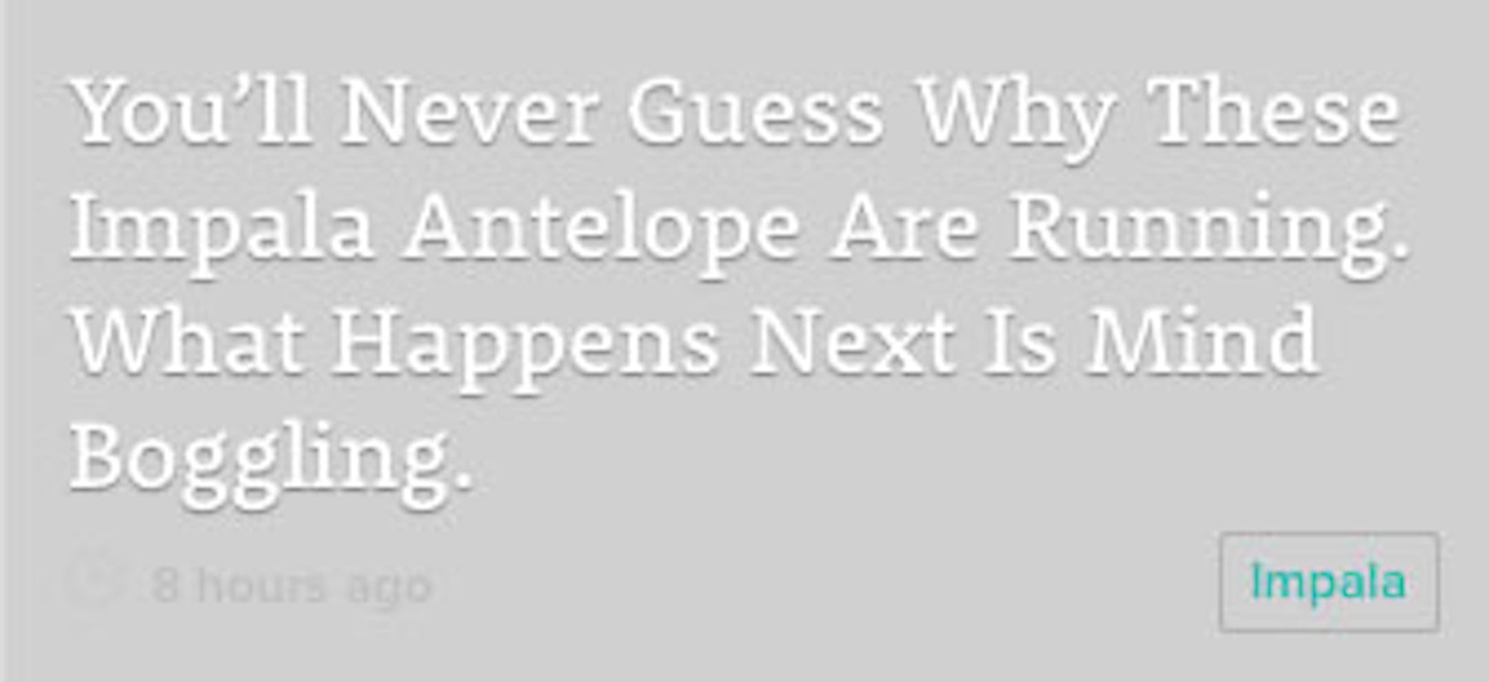 I love how this article had the keyword "Impala," in case I want to store it for more boggling revelations about the inscrutible reasons for impala movement. NEXT