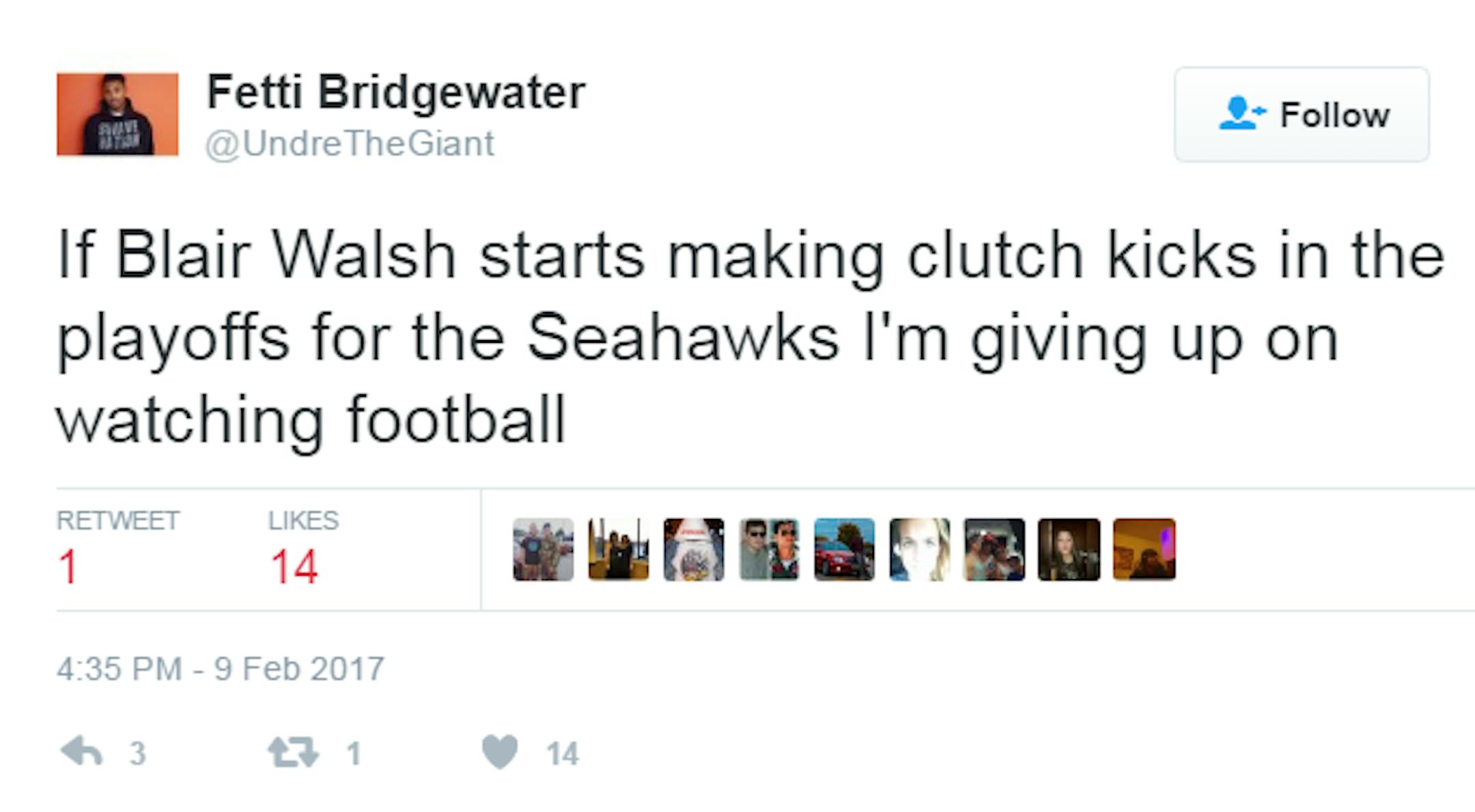 The Twitter account "Life of a Vikings Fan" wrote, "Blair Walsh planned this all along." Minutes later, the account added, "I'm willing to bet, Blair Walsh will do great with the Seattle Seahawks."