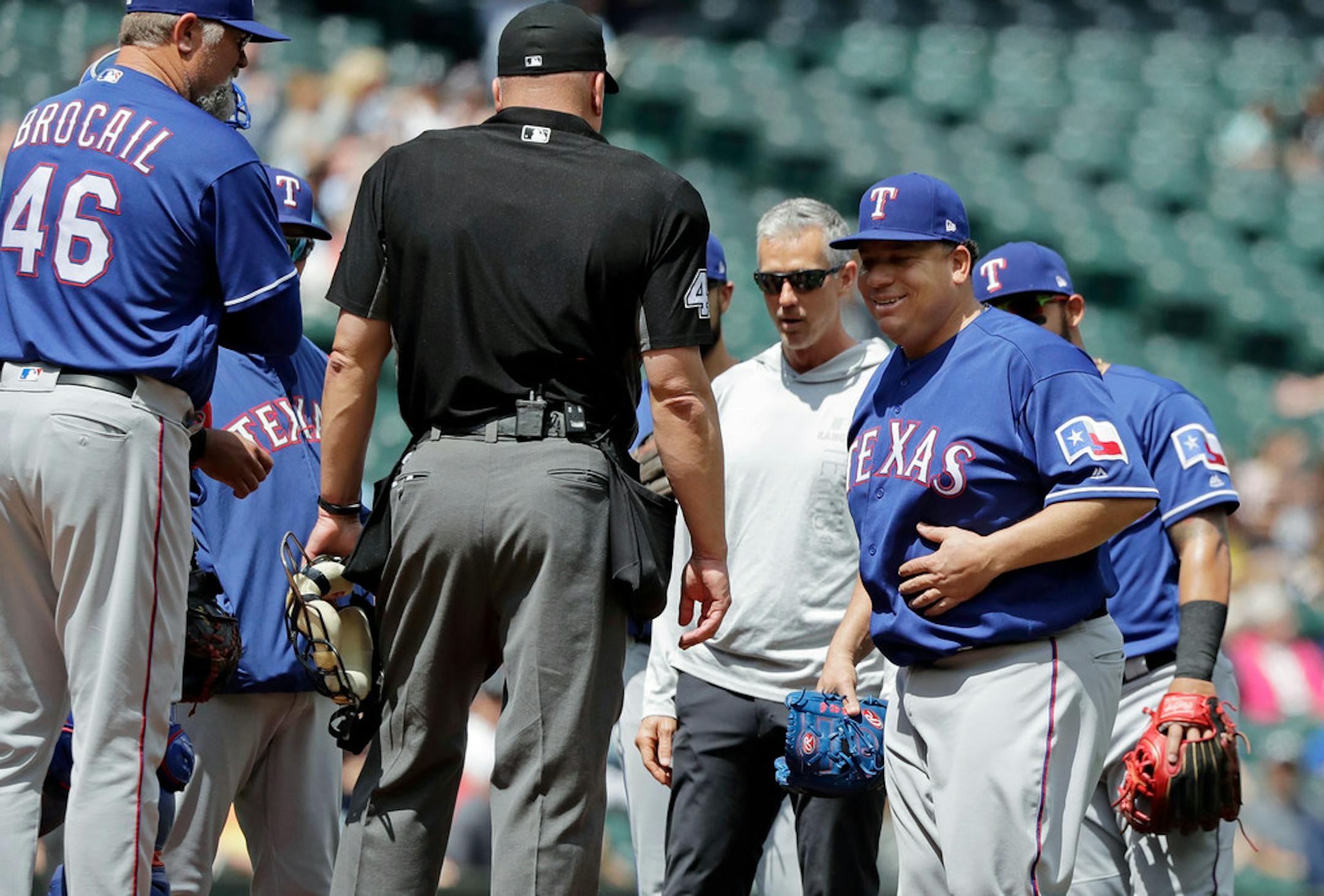 *OK, this is from Wednesday, but it's worth reaching back for here. Bartolo Colon, who quickly became a fan favorite while pitching part of last season with the Twins, is still at it with the Rangers. And in his last start, he took a 102 mph line drive right off his belly. He recovered quickly to get the out, and later quipped, "It's OK, I have a lot of belly." Never change, Big Sexy. Never change.