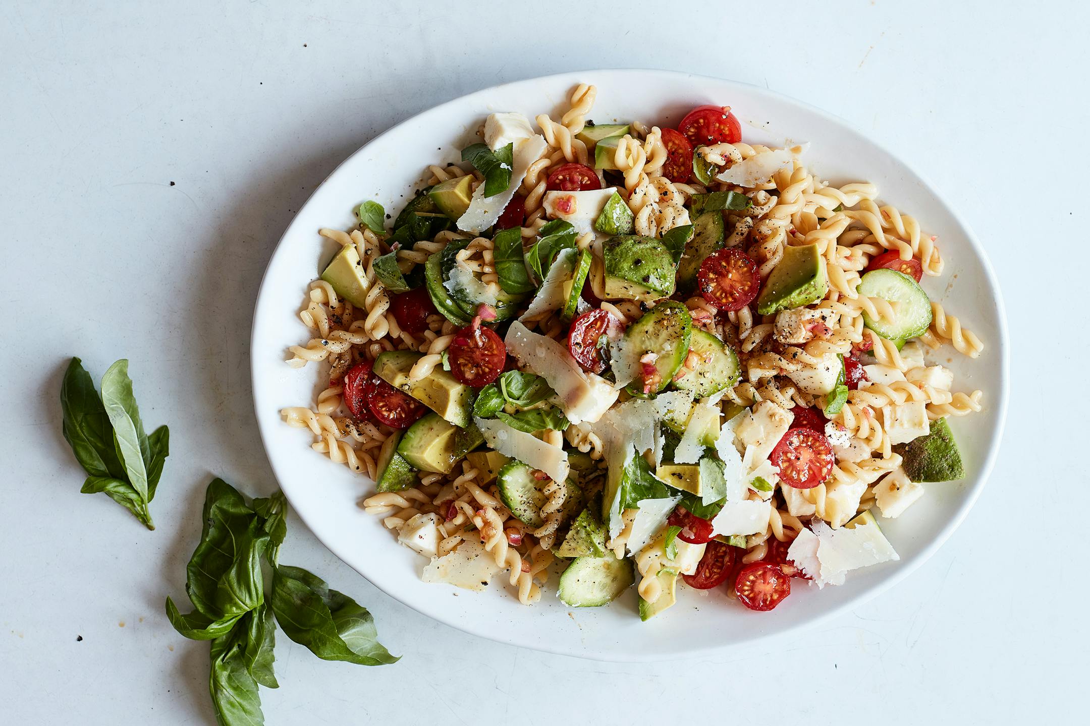 Classic Pasta Salad With Mozzarella, Avocado and Basil
