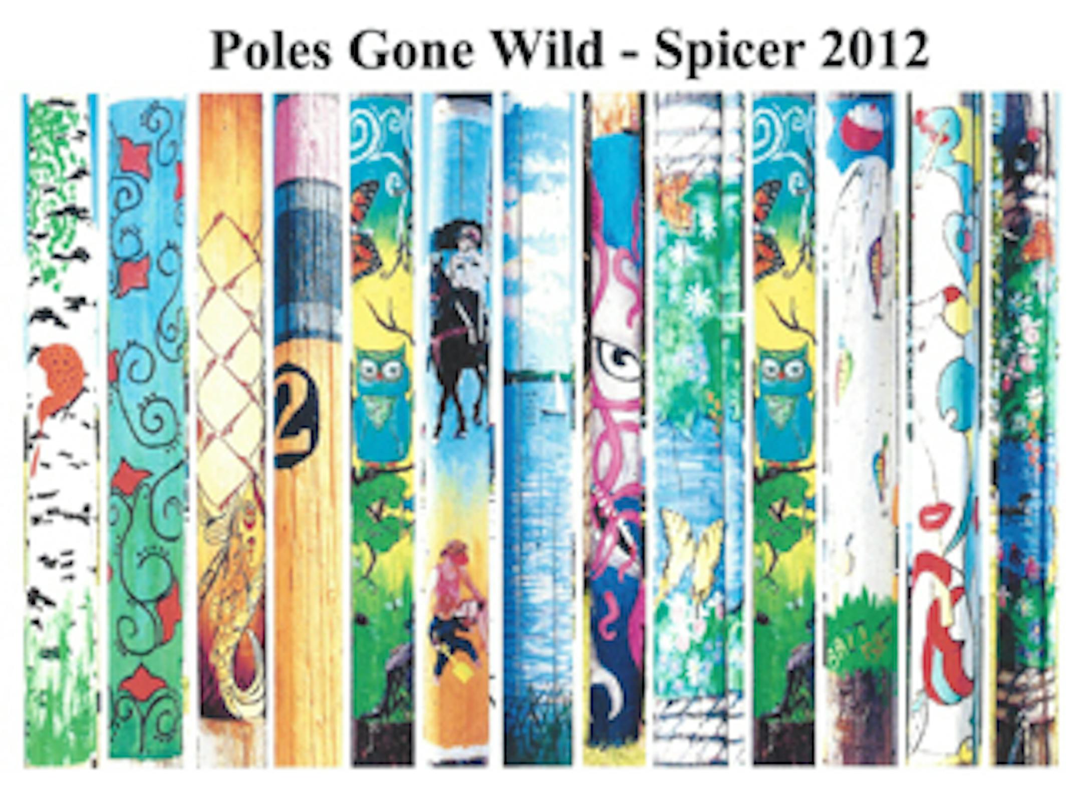 Over the past few weeks, a number of local artists provided sketches of how they proposed to decorate a pole were they given the chance, and from that pool, fourteen were selected by a panel of local art teachers to proceed with the project. Calling the display Poles Gone Wild, the designs range from scenic depictions of local life to more modernist images to possibly even a pole with some abstract nudity in it.